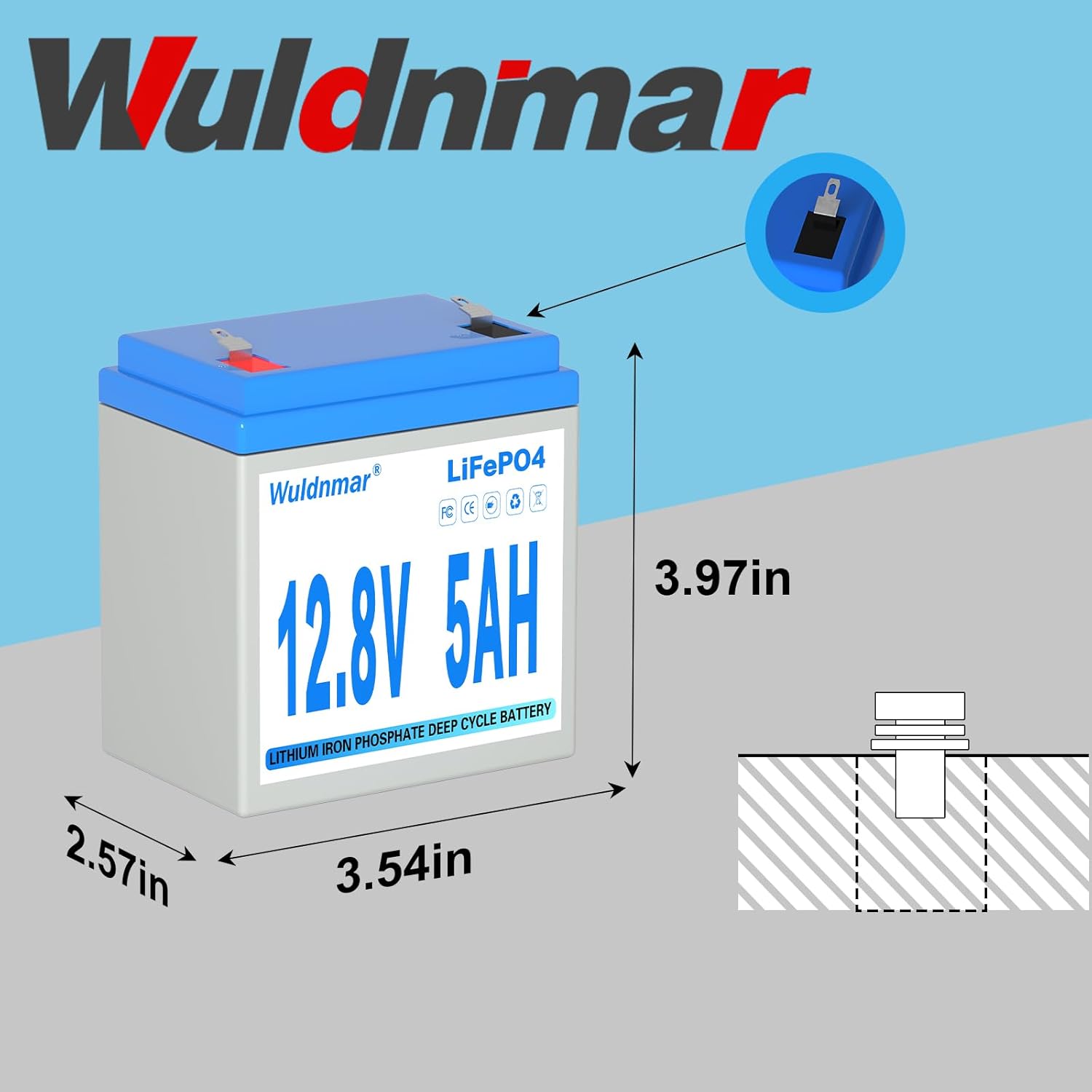 12V 5Ah LiFePO4 Battery, Lithium Battery with BMS, 3000+ Cycles, 64WH Deep Cycle Battery for Marine Battery, Car, RV, Golf Cart, Solar