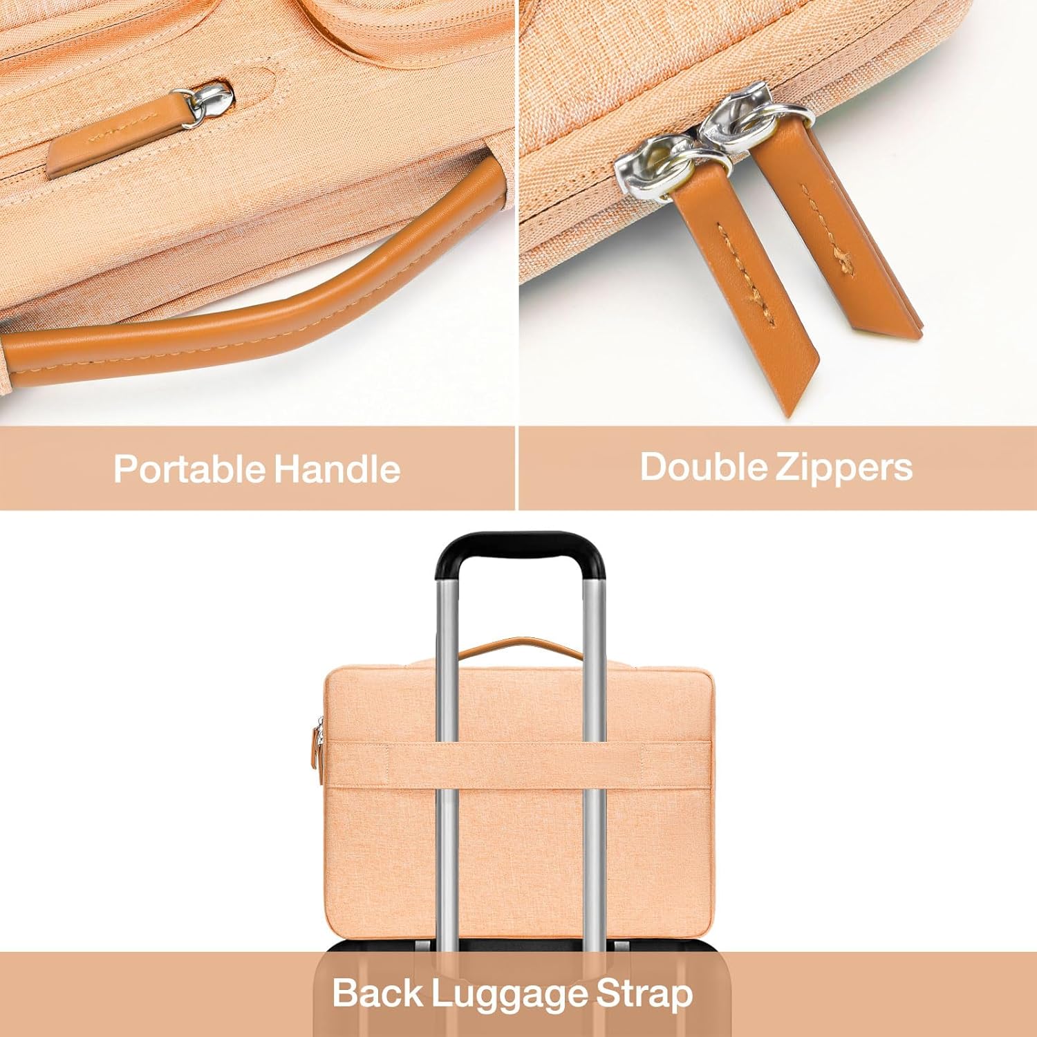 MOSISO 360 Protective Laptop Case 13.3 inch, 13-13.3 inch Laptop Sleeve Compatible with MacBook Air/Pro 13 / Pro 14,HP Dell Acer ASUS,Side Open Carrying Case with 4 Zipper Pockets&Handle, Peach Fuzz