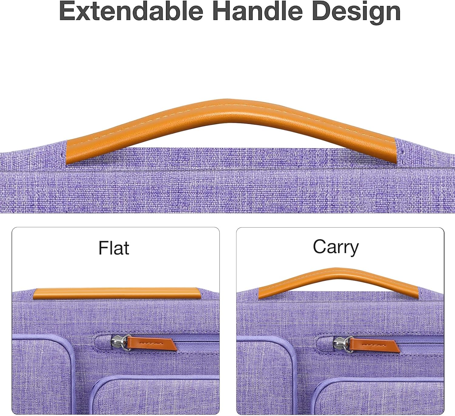 - 360 degree all around protective reinforced interior edge briefcase carrying case bag protect your laptop from any accidental dropping. Extendable handle design makes it to carry your laptop around in comfort, you can also tuck away the handle. Side opening zipper design, avoid accidental dropping of your laptop while carrying. 4 front zipper pockets provide enough space to keep mouse, earphone, pens and notepads, offering added convenience.