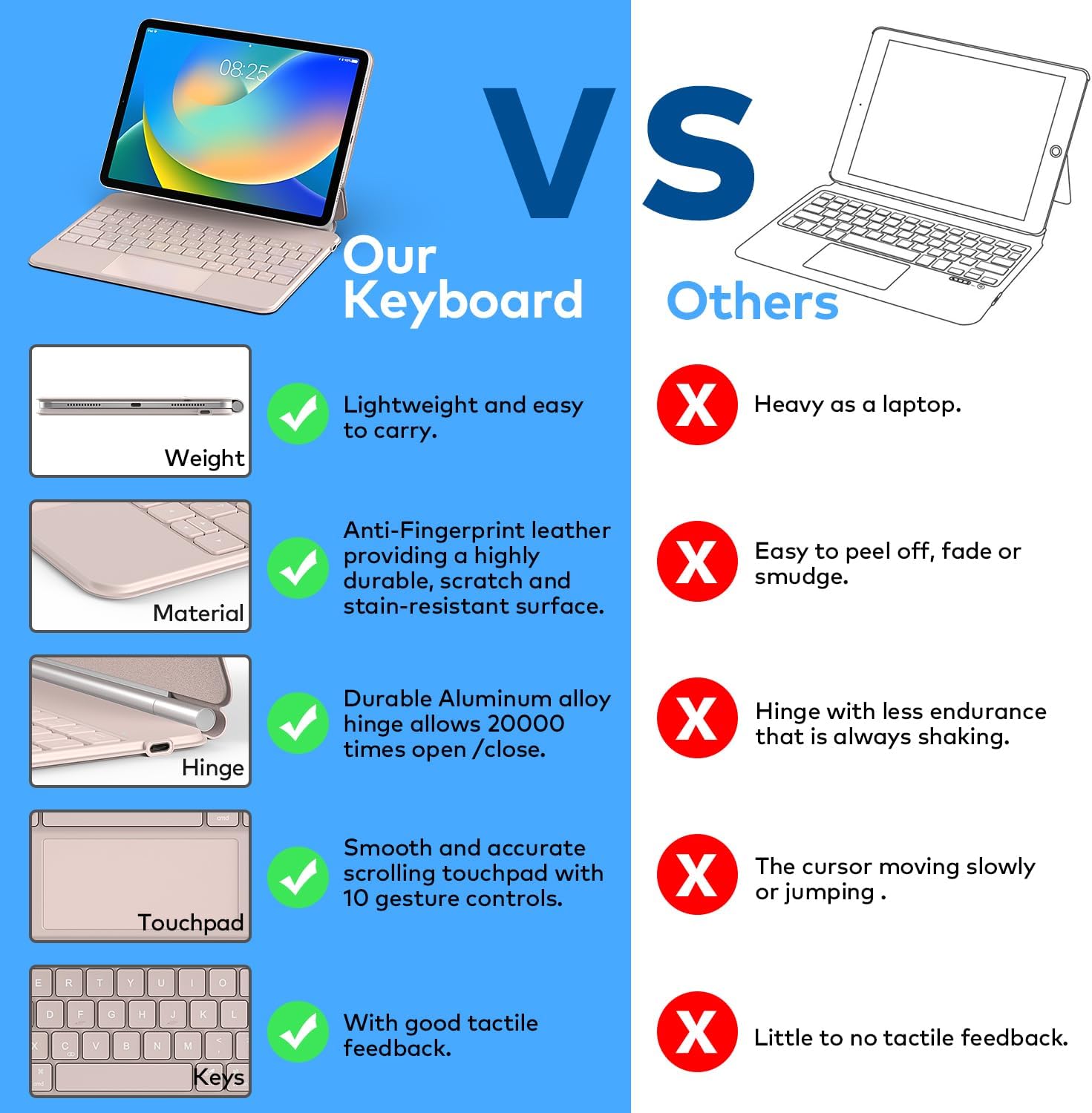 - Easy-Set Magnetic Stand: you can attach your iPad 10th generation to the keyboard back case magnetically, Set the floating cantilever stand with one smooth motion, and transform your iPad into a highly performant and easy-to-use laptop within a second! Which is perfect for traveling, business, and school.