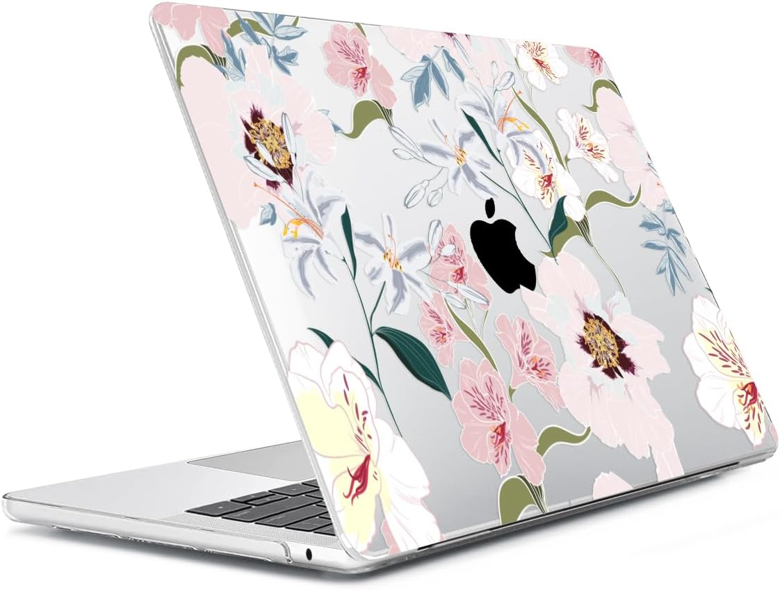 Compatible with MacBook Air 13.6 inch Case 2025 2024 2023 2022 Release M4 A3240 M3 A3113 M2 A2681 with Touch ID, Plastic Hard Shell Case&Keyboard Cover&Screen Film&Webcam Cover, Pink Floral