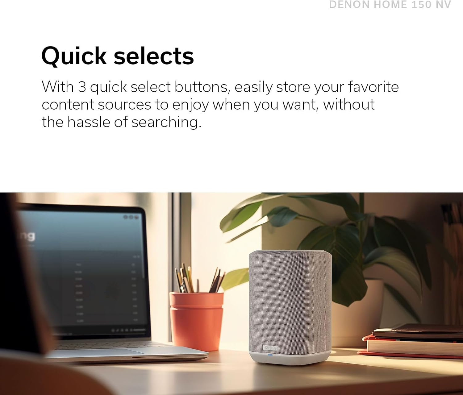 - POWERFUL AUDIO IN COMPACT SIZE - Featuring advanced acoustic hardware, expertly tuned DSP, and premium full-range drivers, the Denon Home 150 NV Bluetooth speaker delivers immersive, room-filling audio with minimum distortion - all from a compact design