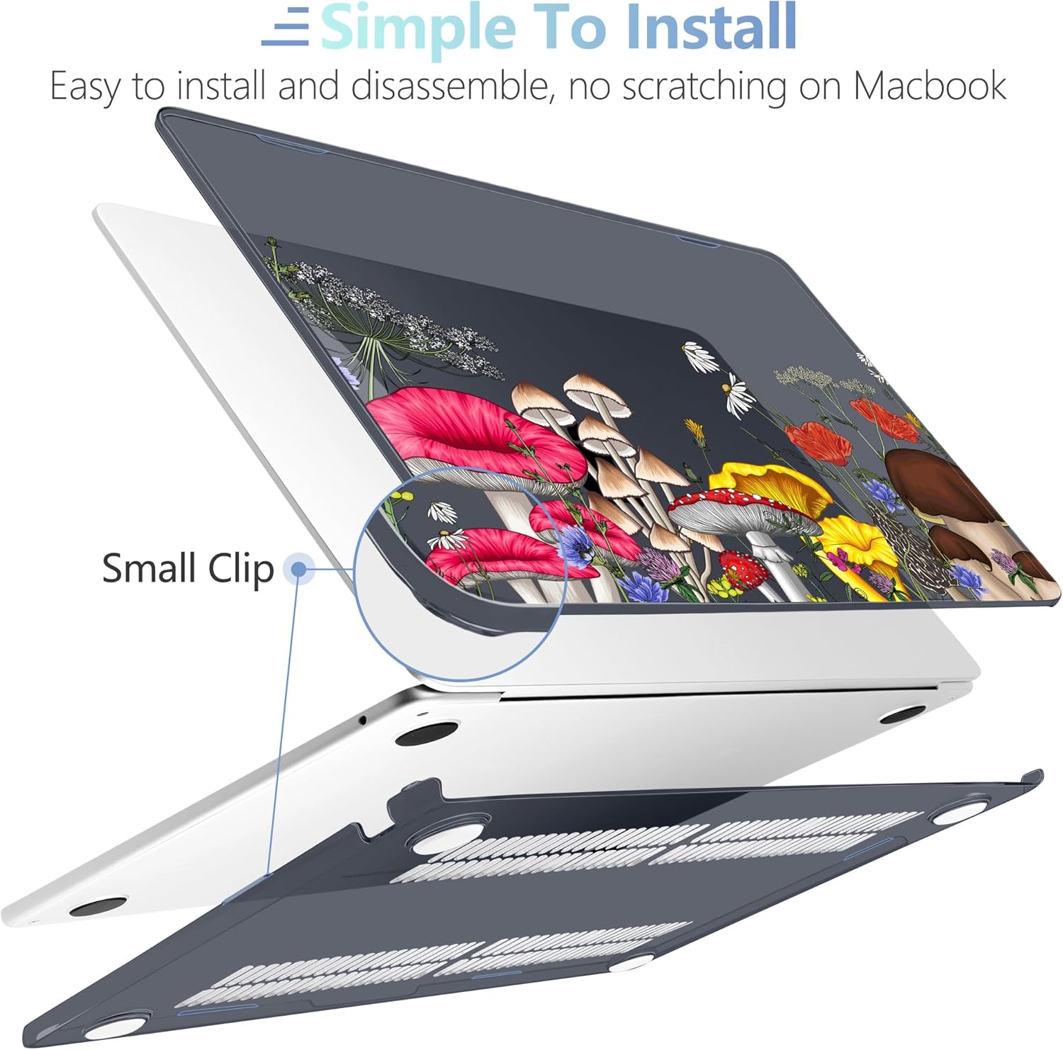 MEEgoodo Case for MacBook Air M4/M3/M2 13.6 inch 2025 2024 2022, Fit Model A3240 A3113 A2681, Compatible with MacBook Air 13 inch, Laptop Hard Shell Case with Keyboard Cover, Forest of Mushrooms