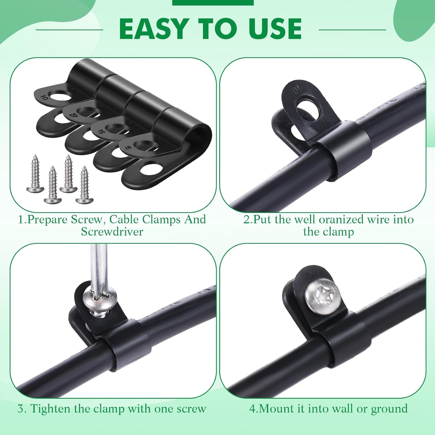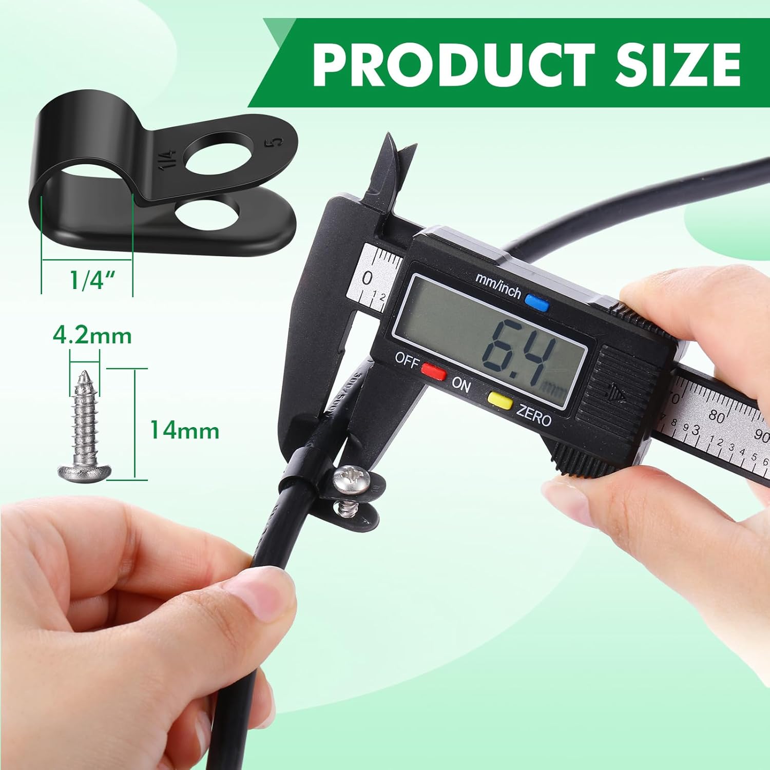 - Size: the r-type cable clip has a 1/4inch closed diameter; Quantity: 50 pack r-type clamps and 50 pack matching screws, they can be applied repeatedly