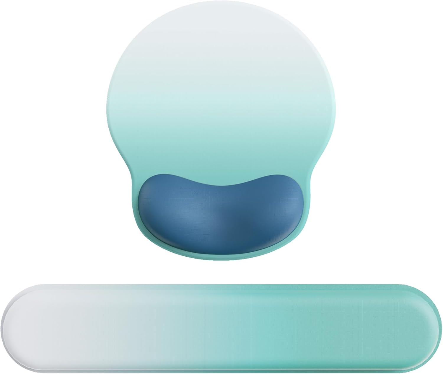 Ergonomic Mouse Pad Wrist Support Set, Memory Foam Keyboard Wrist Rest Set, Keyboard Pad, Non-Slip Base Mousepad(Gradient White Blue Set)