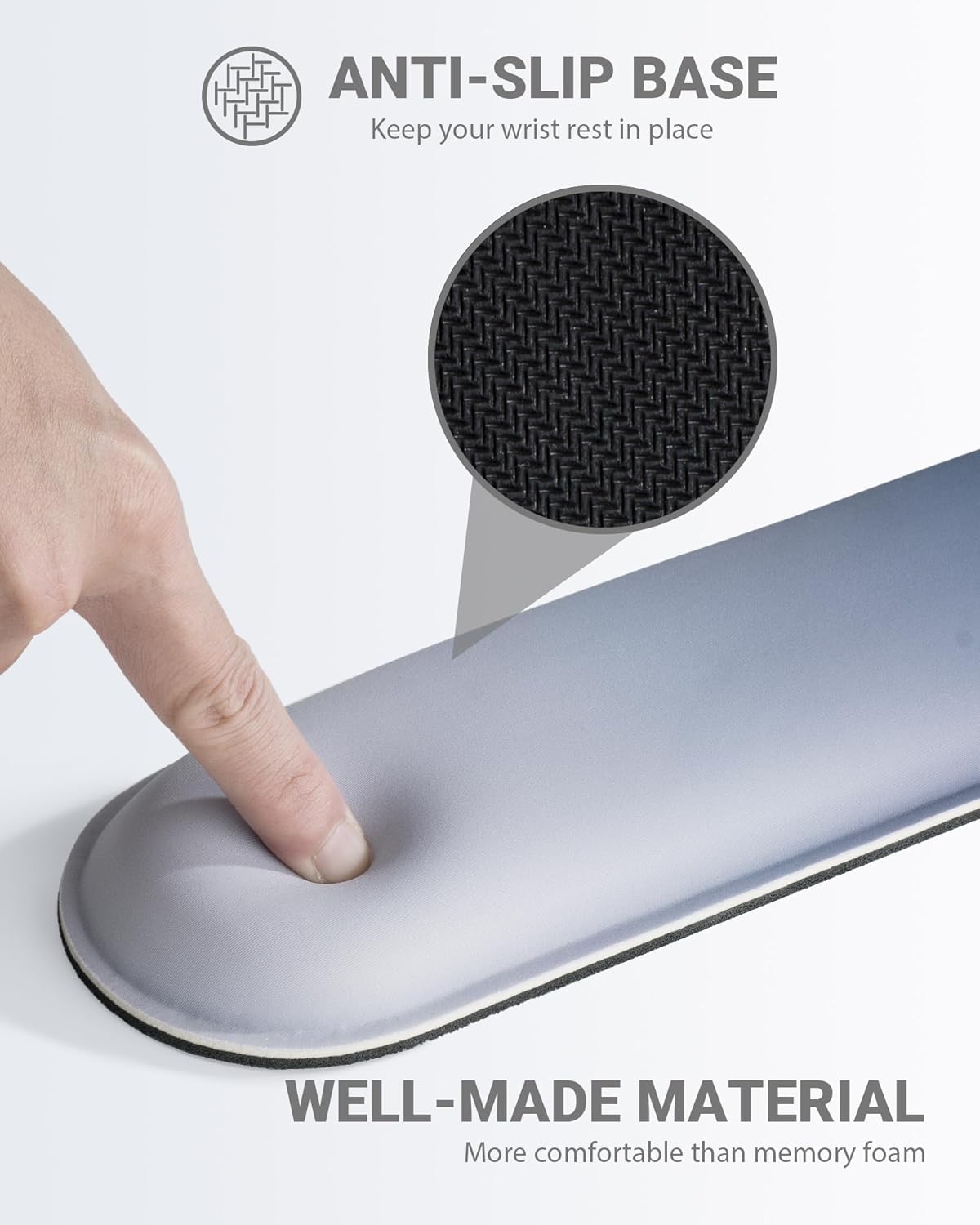 - 【Ergonomic Design】Comfortable gel wrist pad and keyboard pad partially supports the wrist to give support, not easy to deform, reduce pain and prevent carpal tunnel syndrome. And it can be used for all types of mice, wired, wireless, mechanical, laser and optical.