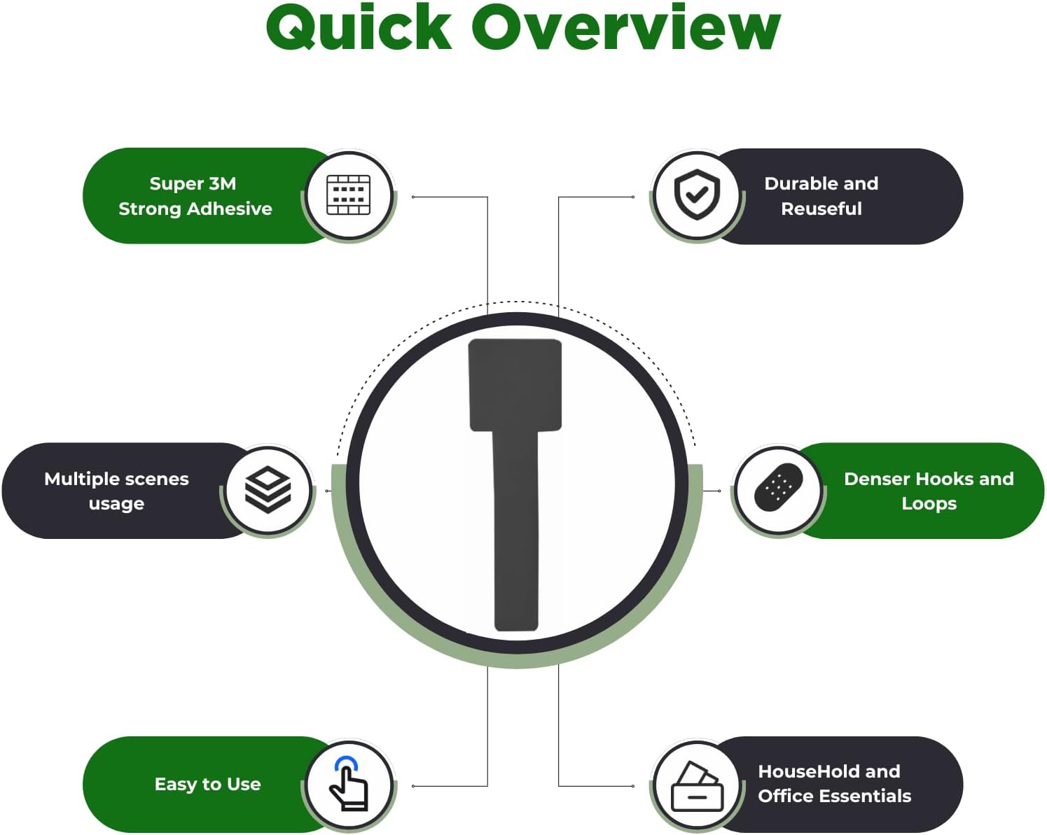 - 【Strong Adhesive Backing】: Features 3M sticky-back technology, providing a secure hold on flat surfaces like glass, metal, and plastic