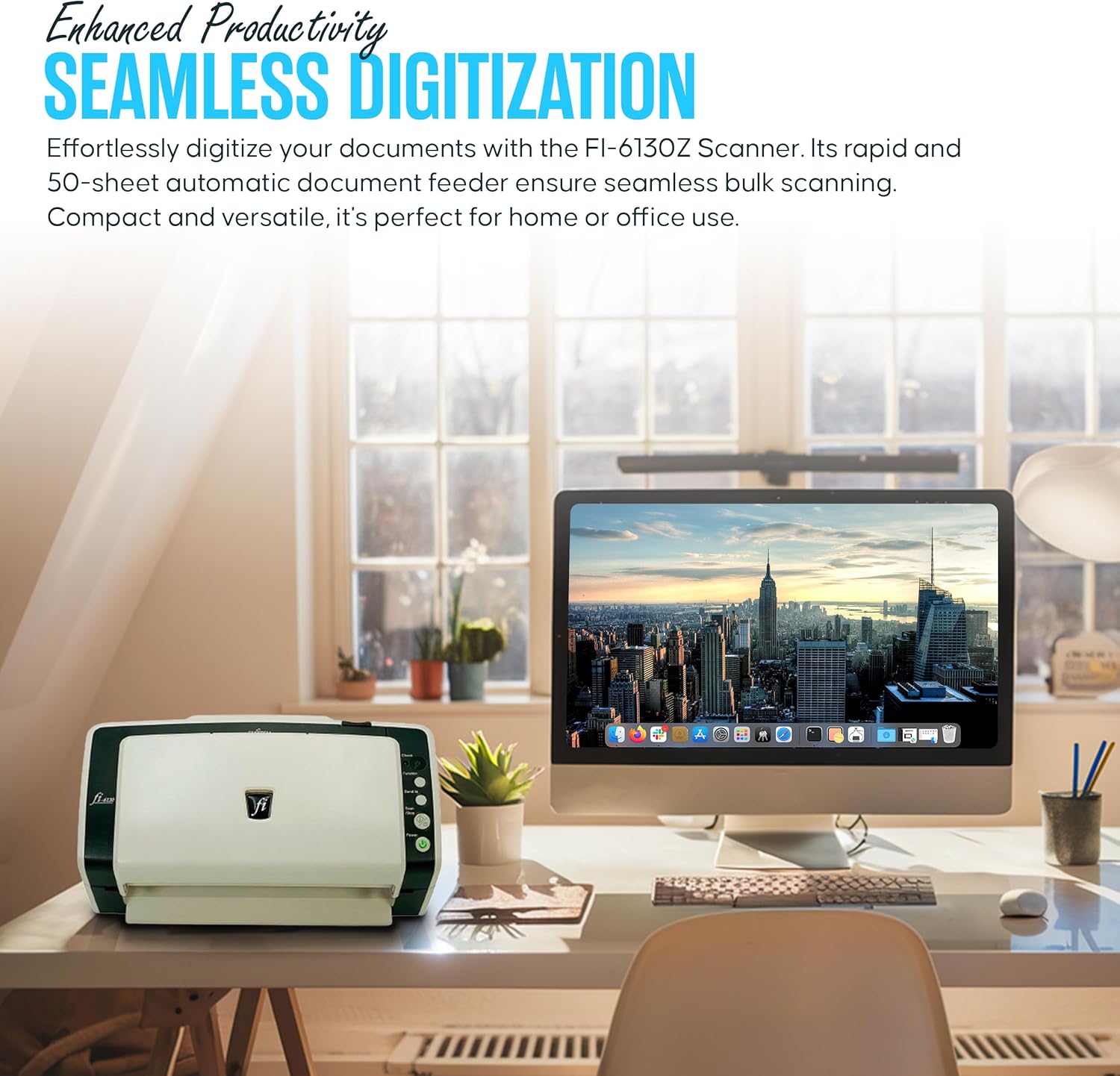 FI-6130Z Fujitsu Duplex Sheet-Fed Receipt Document Scanner with 24V & USB 2.0 Cable (Renewed)