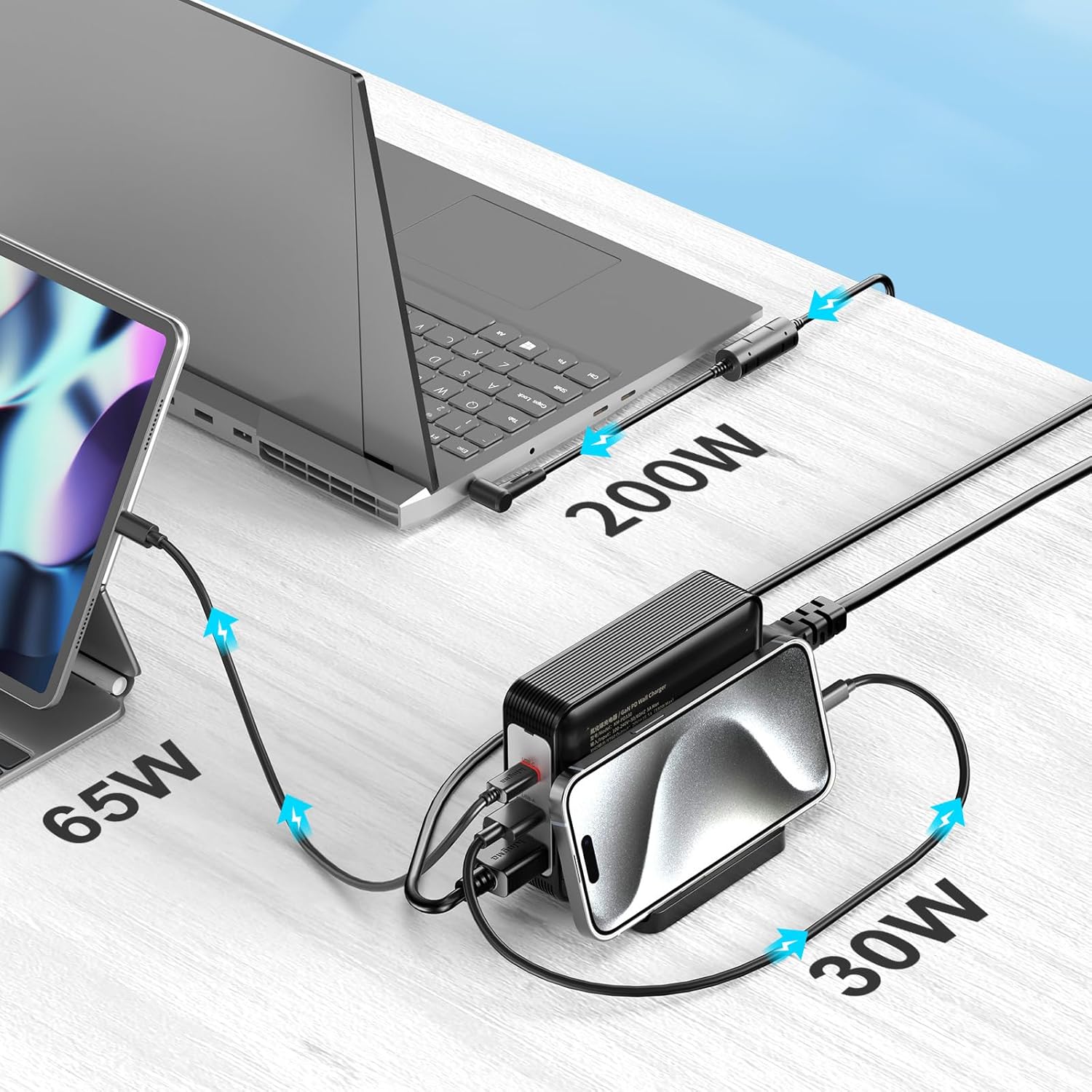 - 【Latest GAN Chip Technology】 GaN technology not only reduces the size and weight of the laptop charger, but also generates less heat, reduces power consumption effectively and improves charging efficiency greatly, makes charging safer and more convenient.