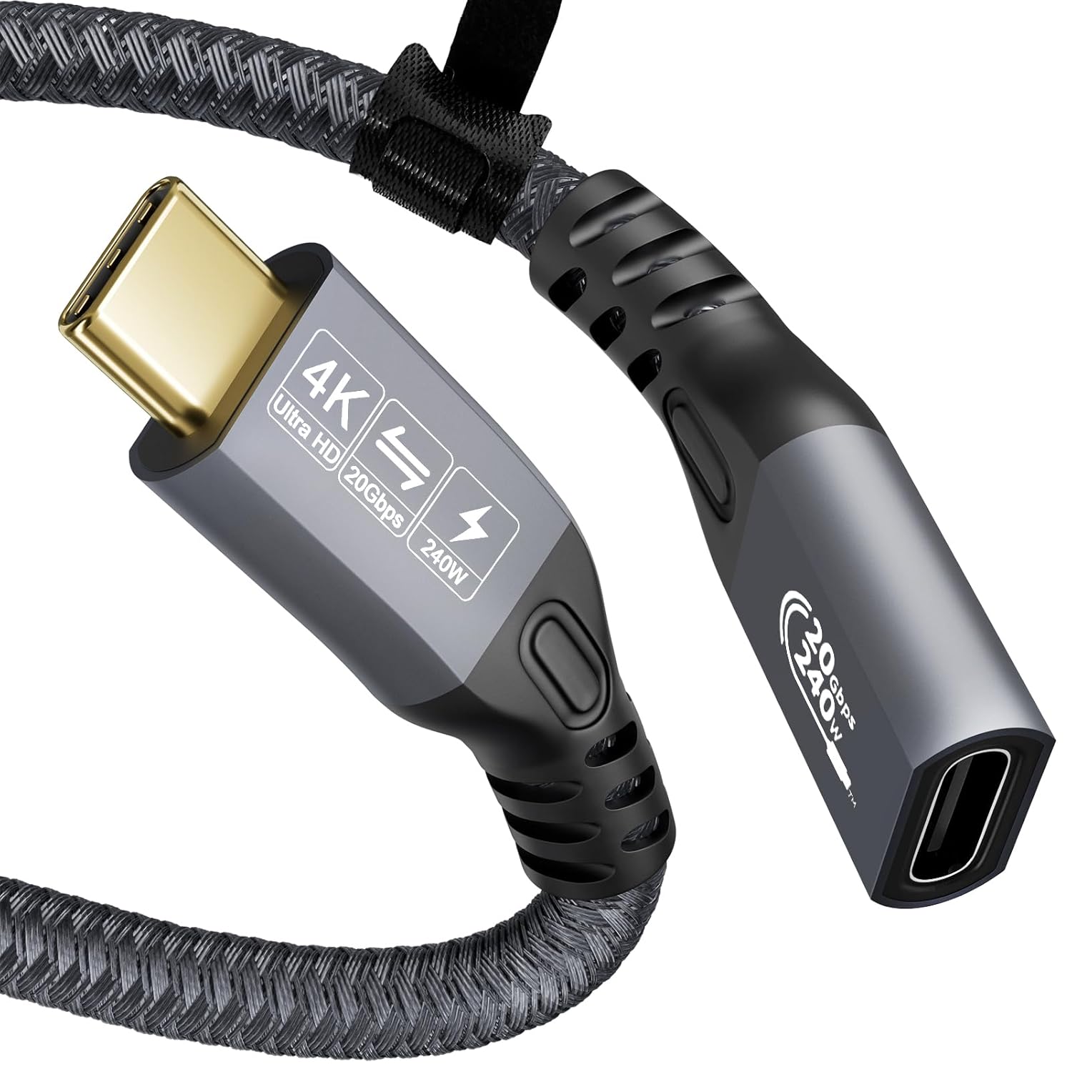 CABLEDECONN USB C 3.2 Gen-2 Extension Cable 0.5M 1.6FT Thunderbolt 3 240W Fast Charging Cable Male to Female Data Transfer 20Gbps 48V/5A Type-C Cable 4K Video Output Compatible with MacBook