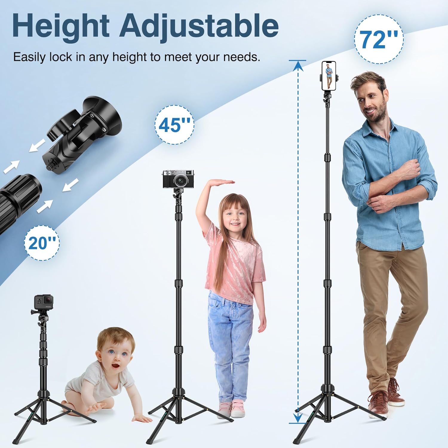 - EXTENDABLE PHONE TRIPOD: Starting your photography adventures with Nineigh iPhone tripod that extends from 20 to 72 inches,offering endless possibilities for indoor and outdoor shoots