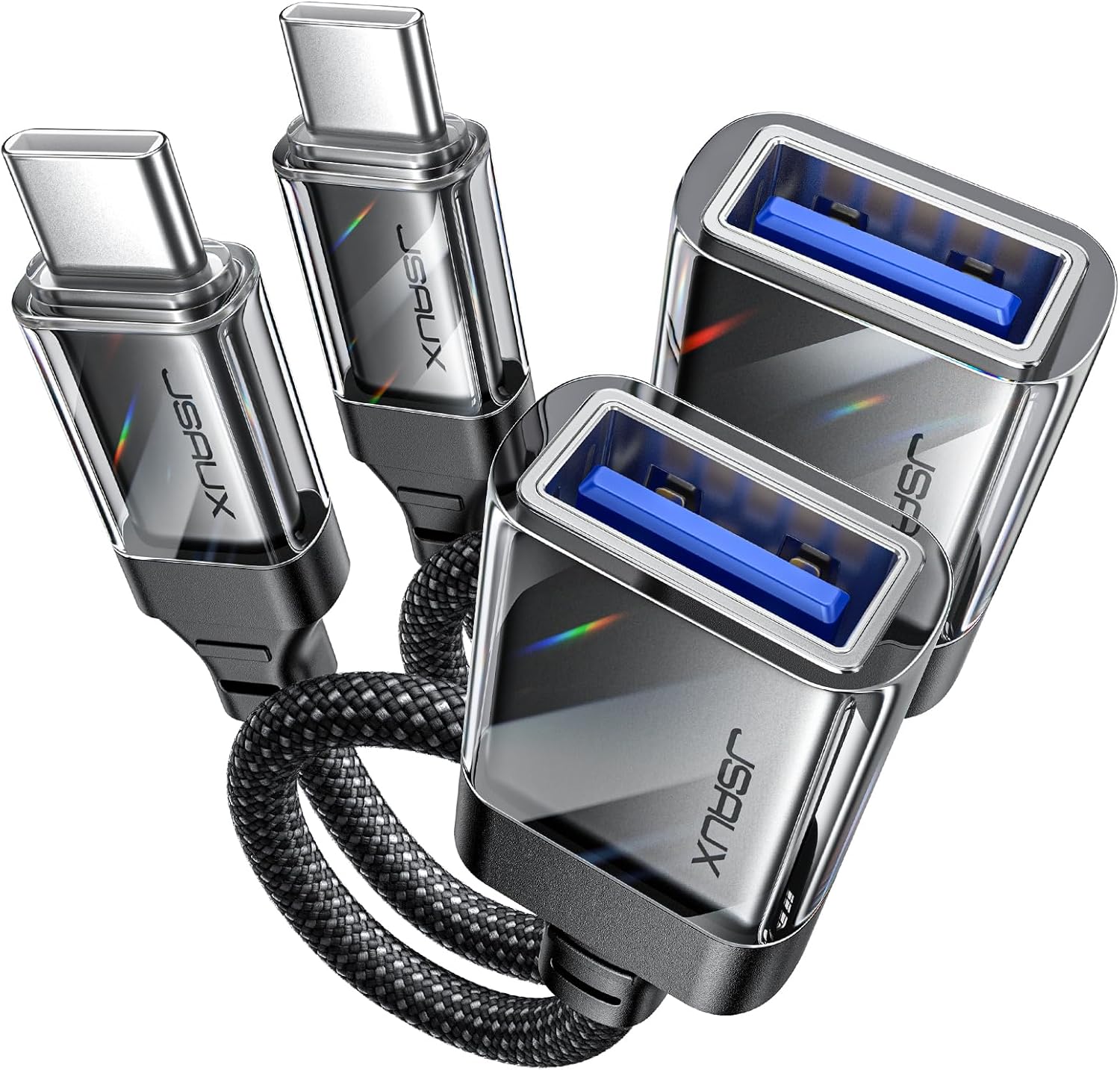 JSAUX USB to USB C Adapter [2 Pack], USBC OTG Compatible with MacBook Pro/Air, iPhone 15 Pro Max, Samsung Galaxy S24/S23/S22/S21 and More USB C Devices-Crystal Black