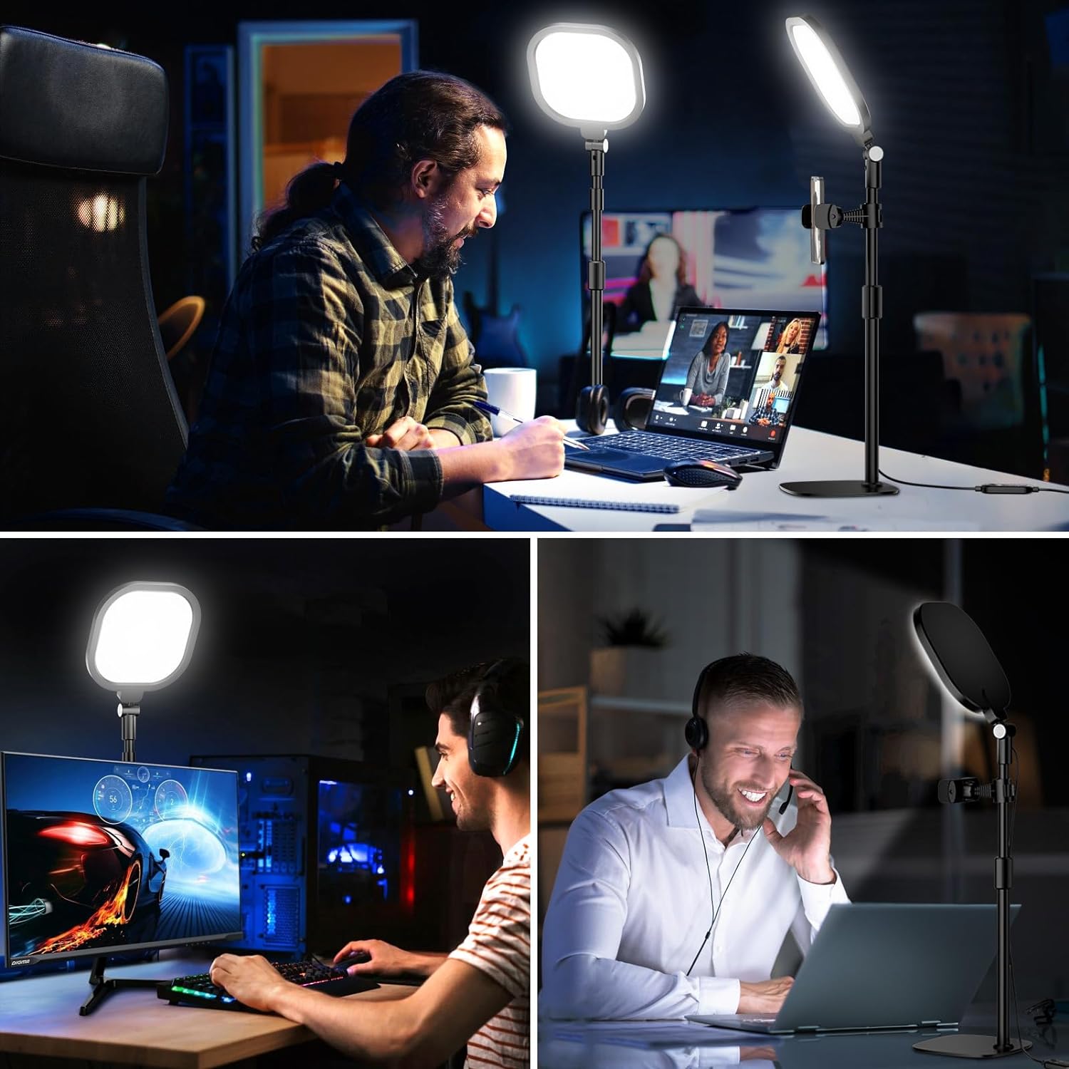2 Packs Video Conference Lights for Zoom Meeting, Podcast Lighting Kit for Working from Home Office, Desktop Video Light with Stand and Phone Holder CRI 97.8