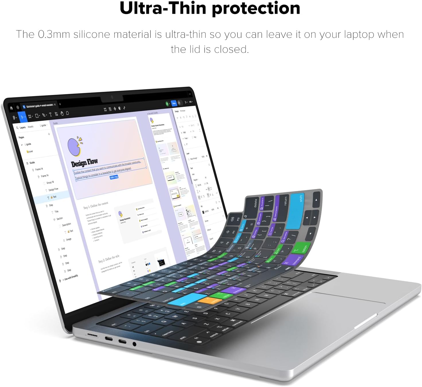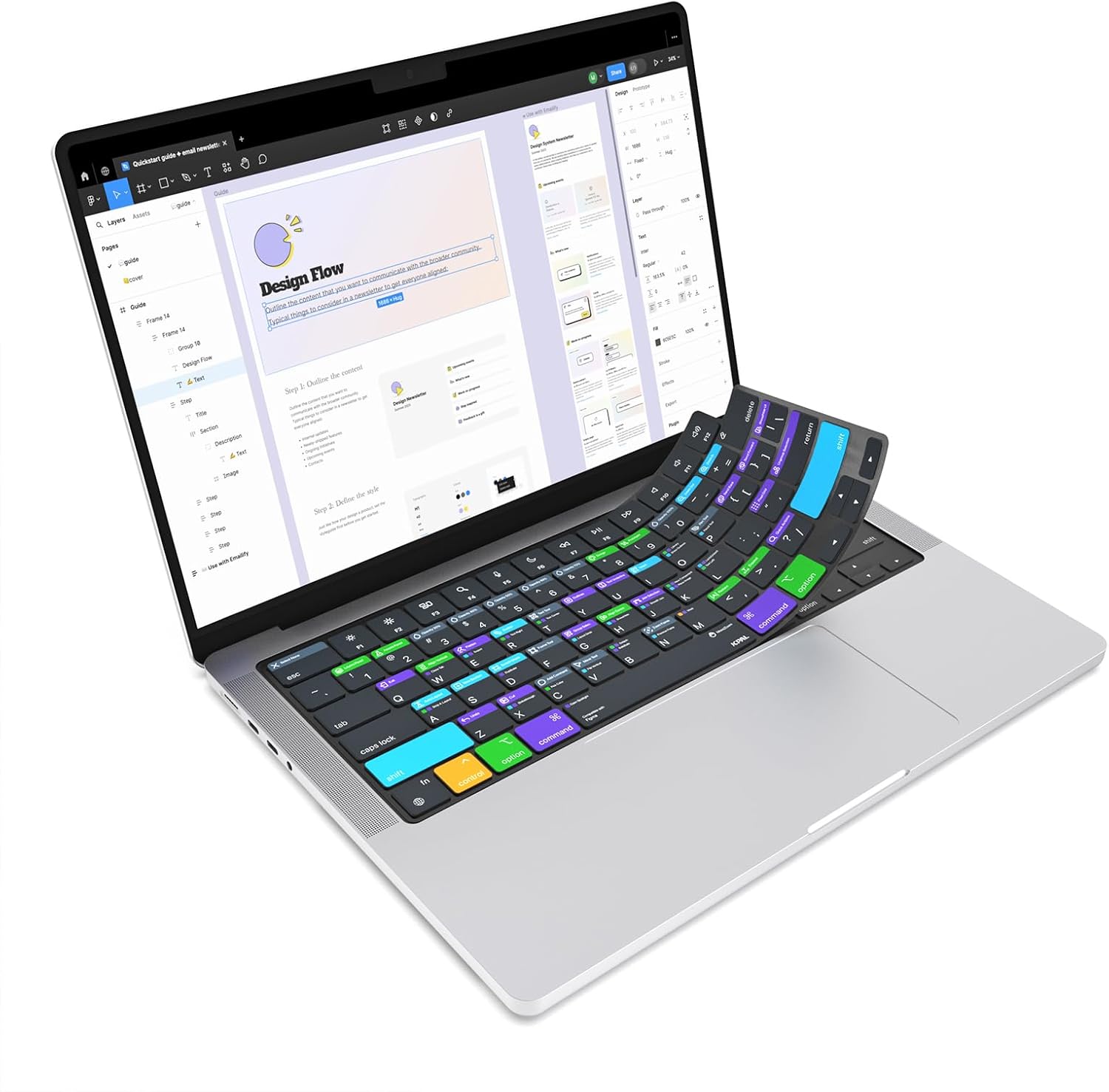 JCPal Figma Shortcut Guide Keyboard Cover for Apple MacBook Pro 14 inch and MacBook Pro 16 inch (M1-M4 Models) and MacBook Air 13 inch and MacBook Air 15 inch (M2-M4 Models) (US-Layout)
