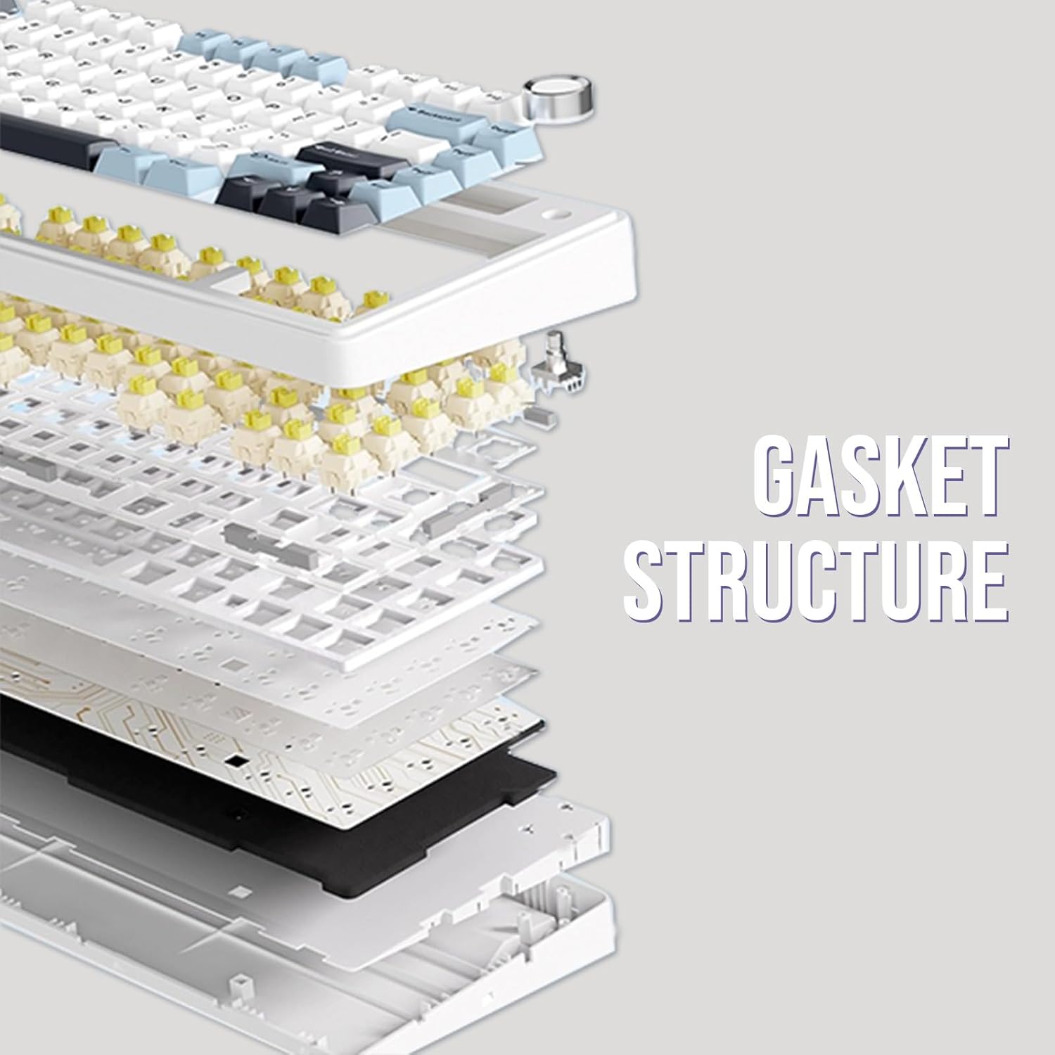 - 【Optimized 75% Compact Layout&Innovative Leaf-Spring Gasket Structure】The F75 redefines space efficiency with its 75% compact layout. This design integrates all the essential keys in a smaller footprint, making it perfect for streamlined desks and mobile setups without sacrificing functionality. Experience the pinnacle of comfort with the leaf-spring gasket structure. This advanced design ensures a flexible yet firm typing experience, reducing fatigue during prolonged use while maintaining a consistent and responsive key feel.