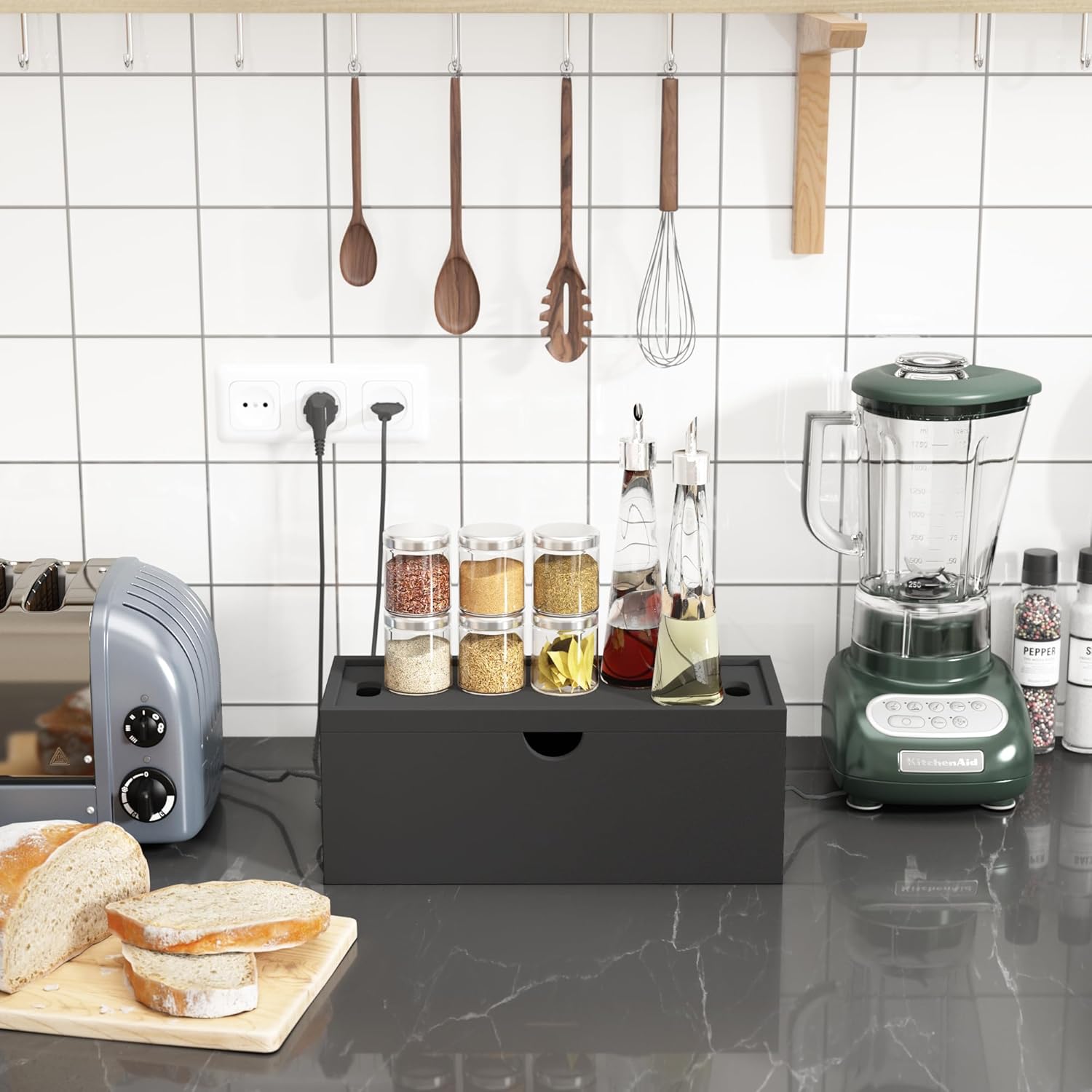 Bamboo Cable Management Box, Large Cord Organizer Box Cable Box to Hide Wires & Power Strips for Desktop Storage Cord Holder for Office Home,No Assembley Required (All Black, Large)