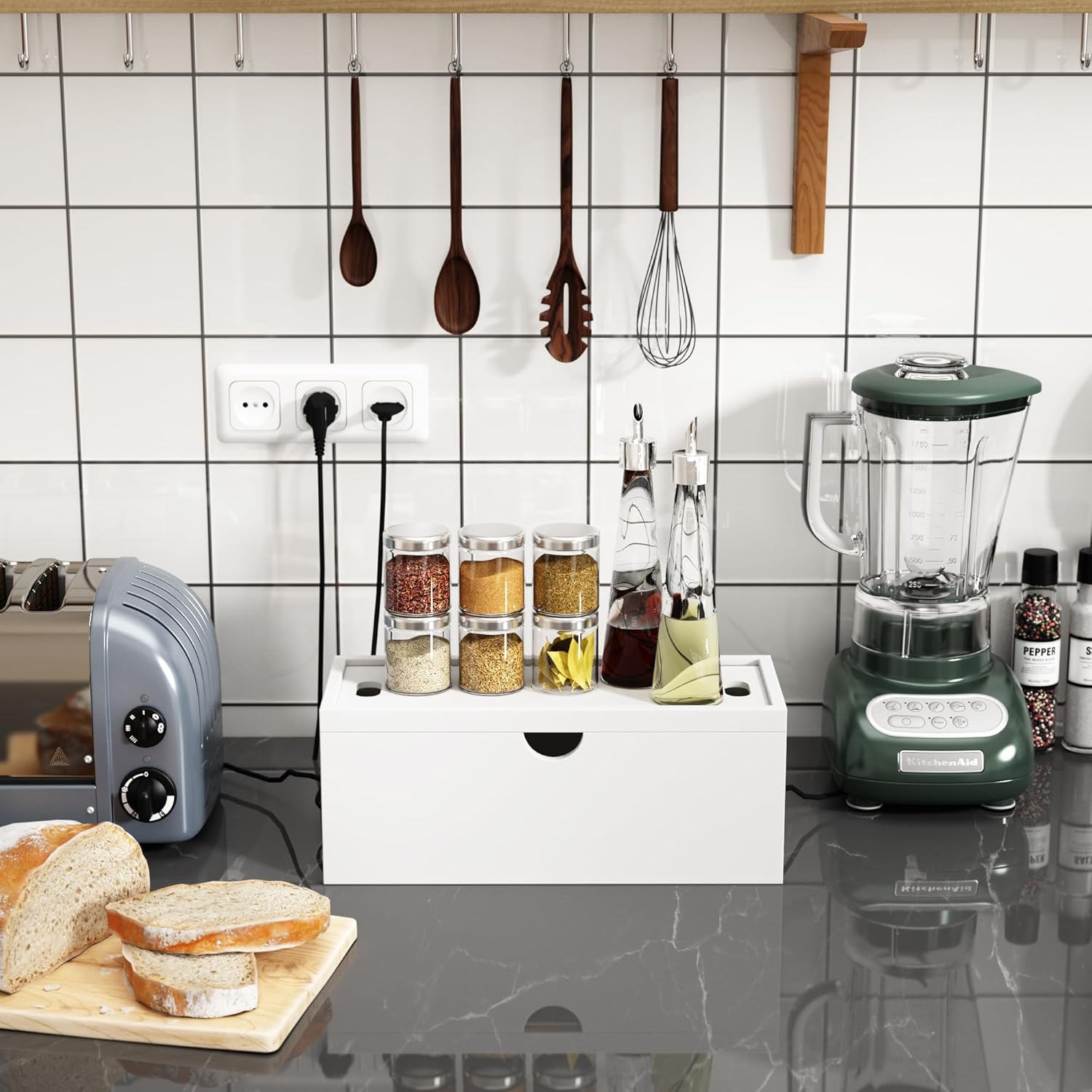 - 【Easy Access to Cables】The two slots on both sides of the cord management box allow you to easily plug in and organize cables to link to all of your electronics. The best solution to conceal and store messy cables.