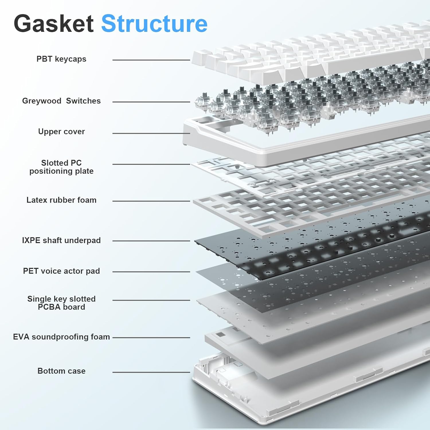 - ใ๐๐ฎ๐๐ธ๐ฒ๐ ๐ฆ๐๐ฟ๐๐ฐ๐๐๐ฟ๐ฒ ๐๐ถ๐๐ต ๐ฆ๐ผ๐๐ป๐ฑ ๐๐ฏ๐๐ผ๐ฟ๐ฏ๐ถ๐ป๐ด ๐๐ผ๐ฎ๐บ๐ใ- GASKET structure ensures the highest quality assurance with great durability and stable performance. Equipped with 4 layers of thicker sound-absorbing foams, silicone dampener pad, which reduces 40% noise and removes 80% hallow sound. Bringing creamy sounding, natural and clear feedback, no more cavities noise.