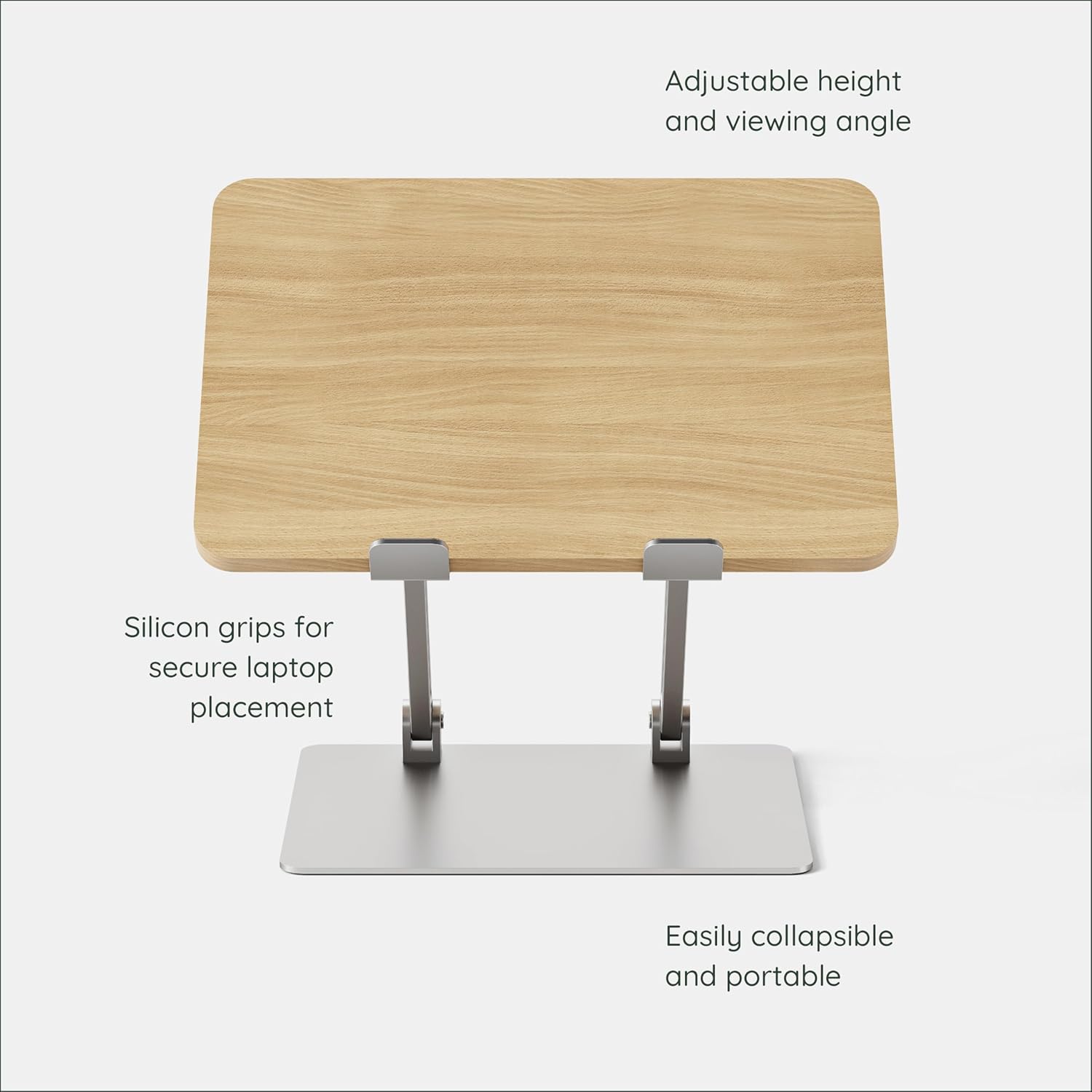 Branch Adjustable Laptop Stand - Elevate Ergonomics & Reduce Strain, Laptop Riser Customizable Height & Angle, Portable & Robust Design for Home or Office, Secure Silicon Grips - Woodgrain