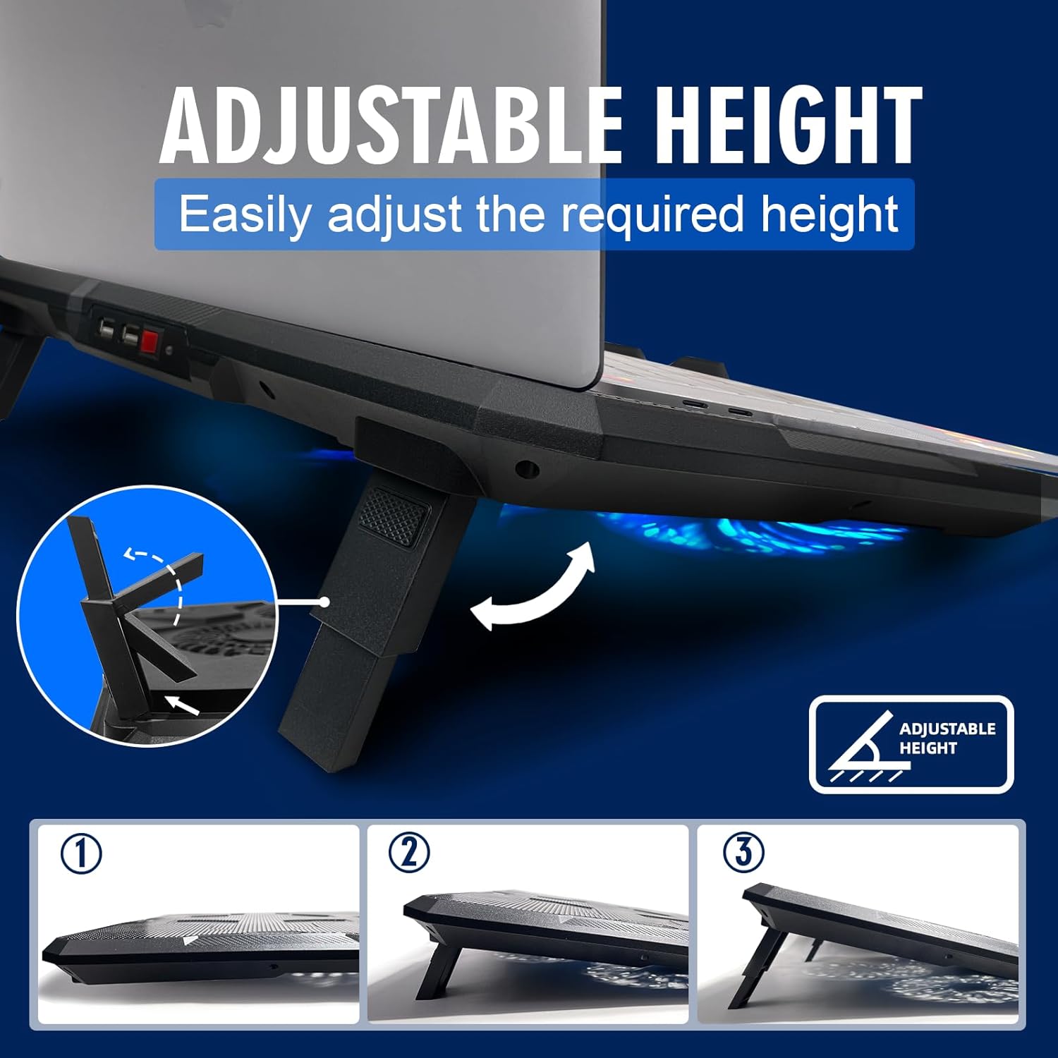 - 【3 Adjustable Heights】 Adjust the cooling pad's angle to suit your preferred sitting position and work style, providing a comfortable viewing angle.