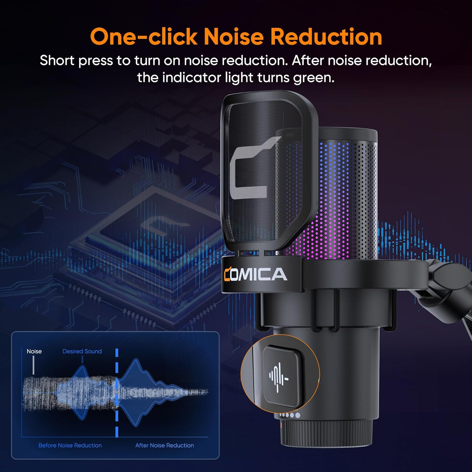 - 【High Fidelity and Clearer】Comica gaming microphone has CalMix noise reduction technology and cardioid pickup pattern, which can effectively eliminate background noise; at the same time, the 48kHz/24bit USB microphone can clearly capture sound details, whether it is live streaming or recording of games. It can bring you ultra-low noise and high-fidelity sound, allowing your recording to reach professional studio-level quality.
