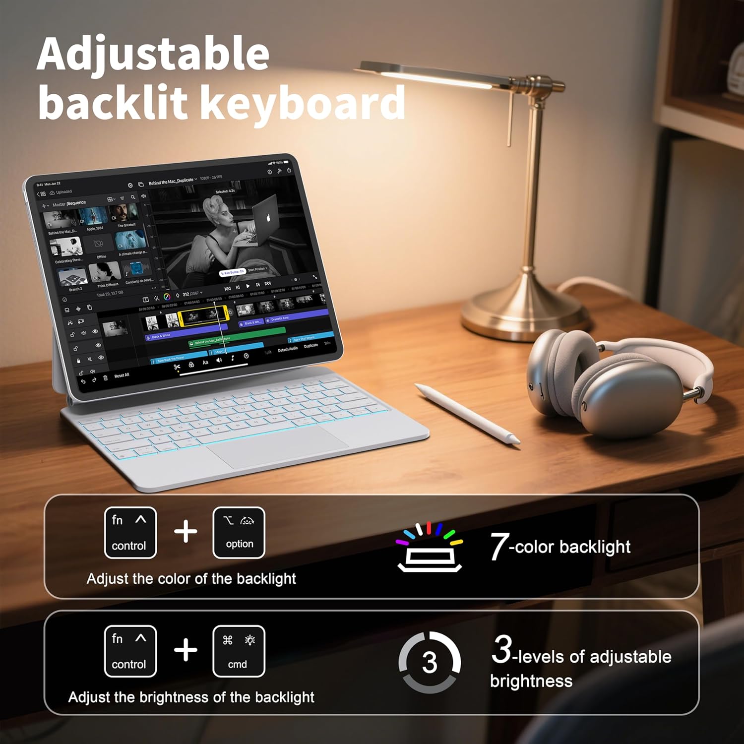 iPad Air 13 Inch Case Keyboard (M3 2025 / M2 2024) & iPad Pro 12.9 inch (6th,5th,4th,3rd Gen) Magic Keyboard with 7 Color Backlight, Multi-Touch Trackpad, Magnetic Stand,Auto Sleep/Wake (White)
