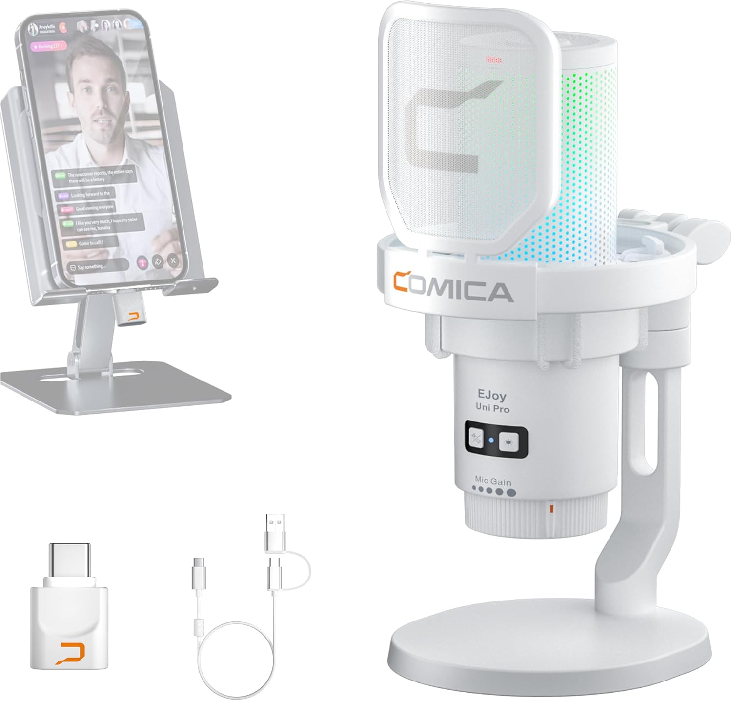 COMICA EJoy Uni Pro Wireless USB Condenser Gaming for PC, PS4, PS5, USB C Phone and Mac, RGB Computer Mic for Twitch, Streaming/Podcasting/YouTube, Noise Cancellation Mic with Mute, Gain, Monitoring