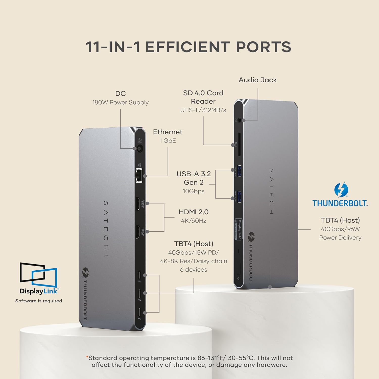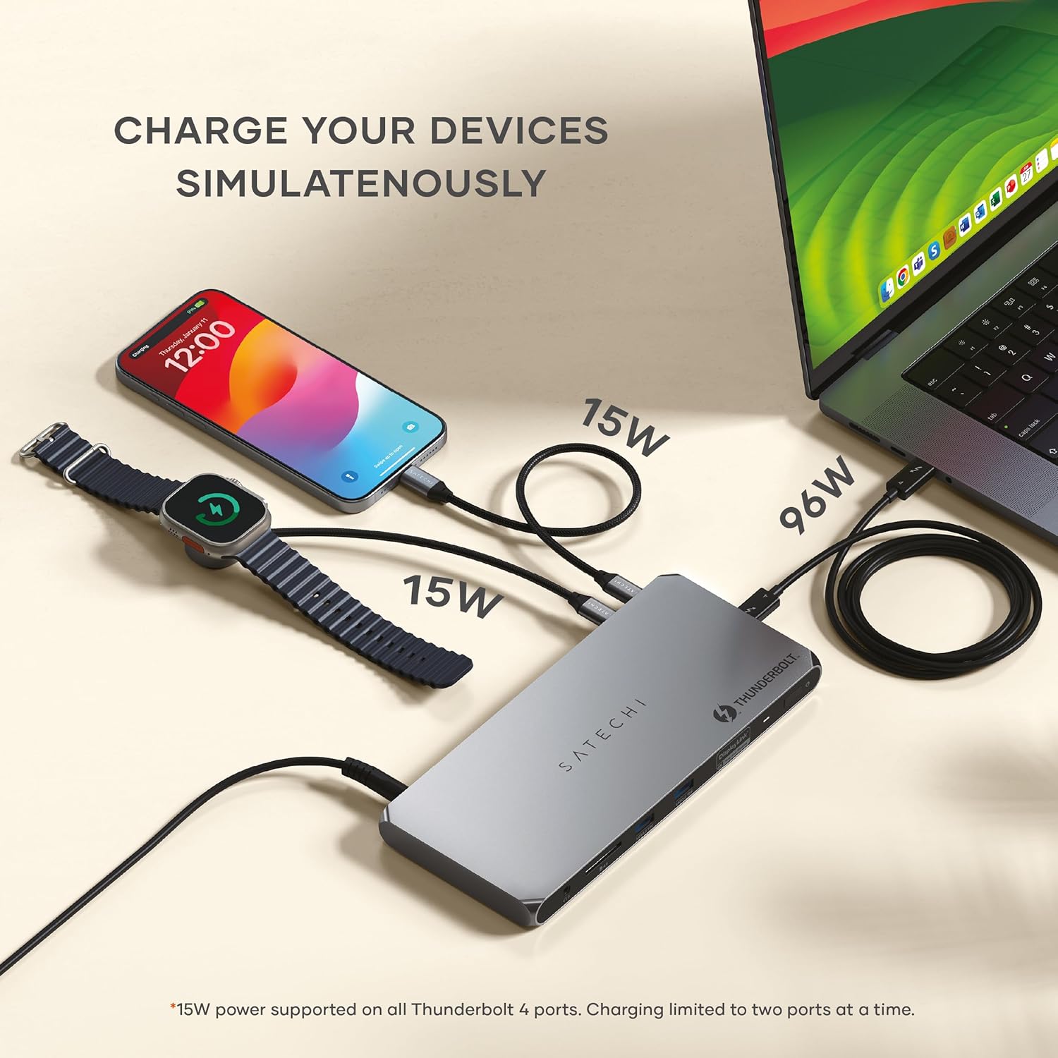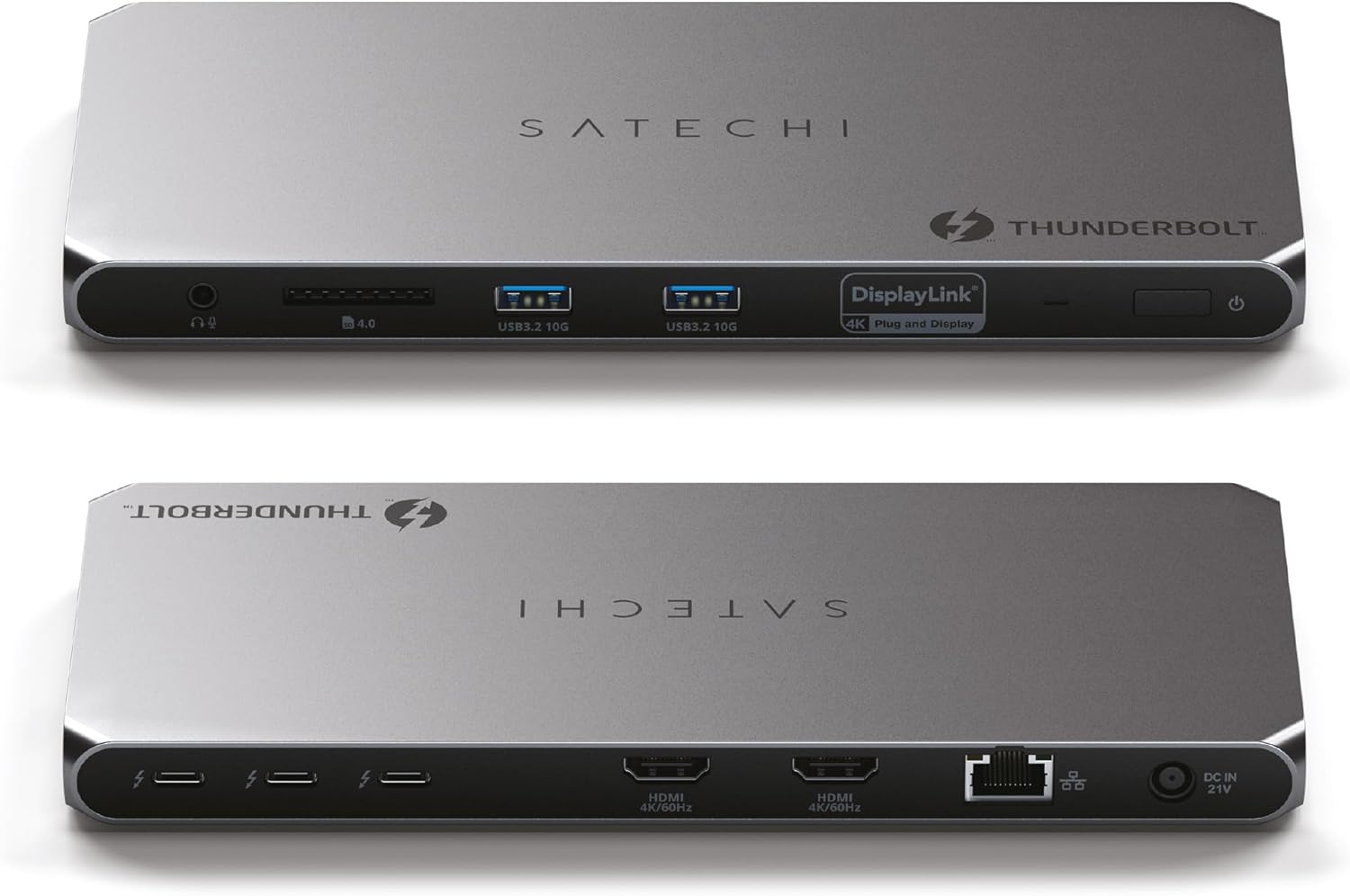 Satechi Thunderbolt 4 Dock 100W Charging, Dual Monitor HDMI 4K/60Hz, 40Gbps Data Transfer, 2 USB-A 3.2, Ethernet, Thunderbolt 4 Dock for MacBook Air/Pro M4, Mac/Windows, DisplayLink Software Required