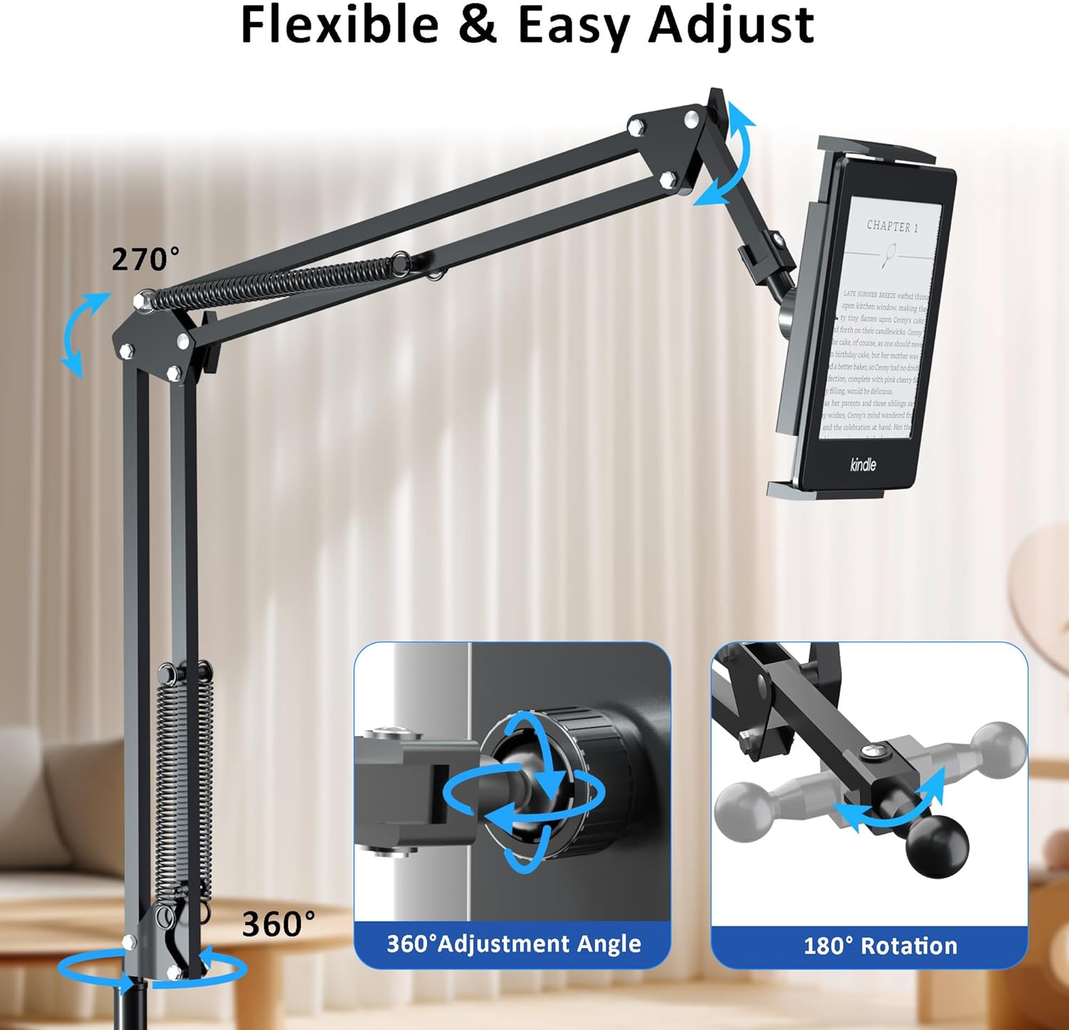 - 【 Adjustable & Handsfree Reading 】 This gooseneck arm makes you reading in bed baying down, with page turner remote included, handsfree when read with your e-Readers. Compared to other gooseneck holder, this design is more easily to adjust the angle you need, and hold your device more sturdy. Great gifts for book lovers readers.