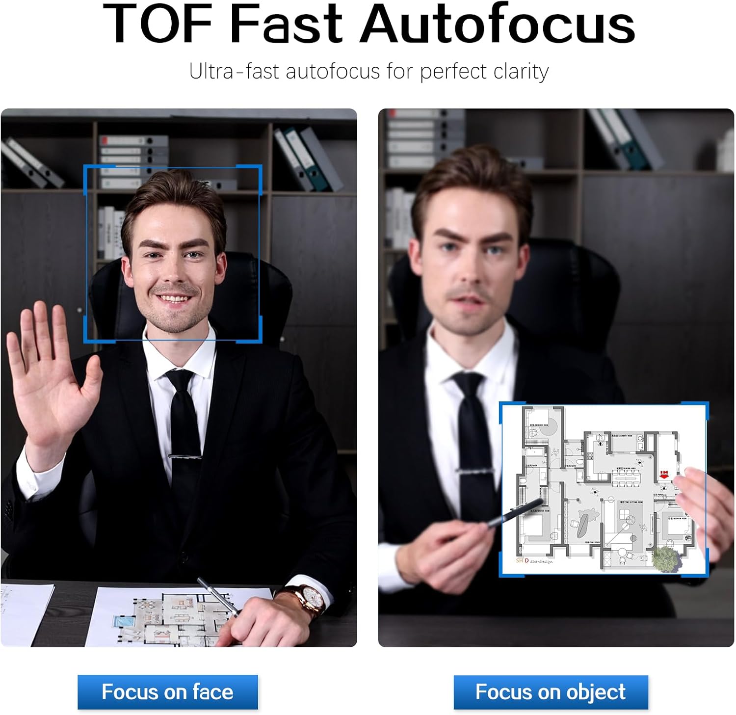 - 【TOF Autofocus and HDR】This 2K webcam features TOF autofocus for clear focusing in any scenario, and HDR technology for optimal lighting even in low-light or backlit environments.