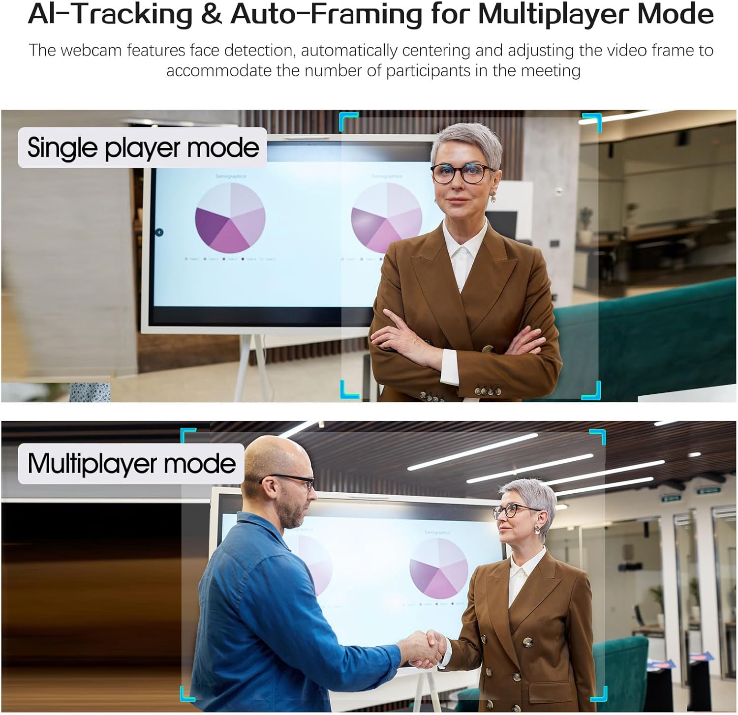 - 【1080P/2K@60FPS】This webcam for pc boasts a 2K (5 Megapixels)ultra-clear resolution, delivering crisp, high-definition, and lifelike images, elevating your meetings to the next level. Ensure your colleagues see you in high-quality video calls,ideal for remote business meetings.
