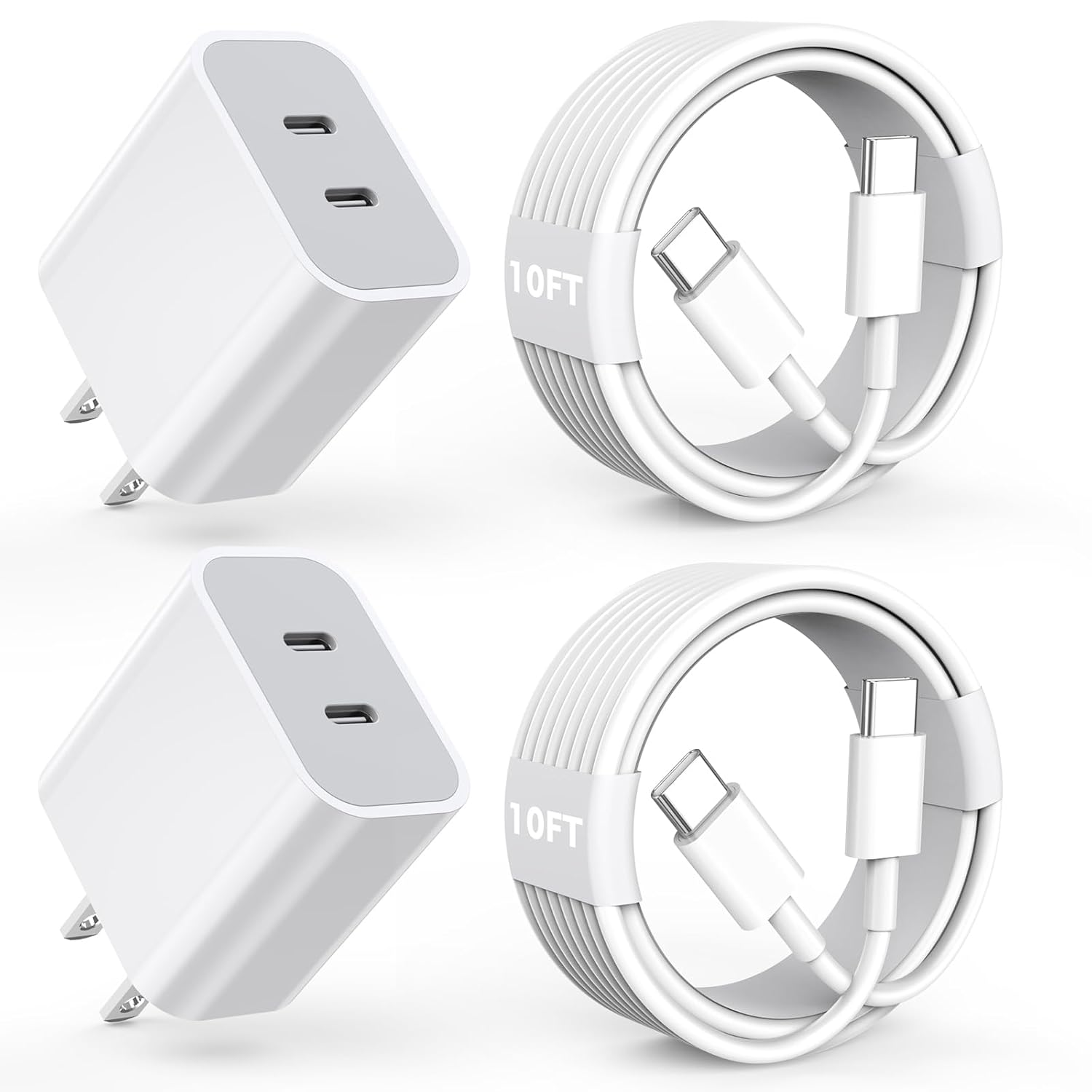 - Included Components : 2 x 20W Dual Ports USB C iPhone Fast Charger Block, 2 Pack of 10 foot Type C to C cable