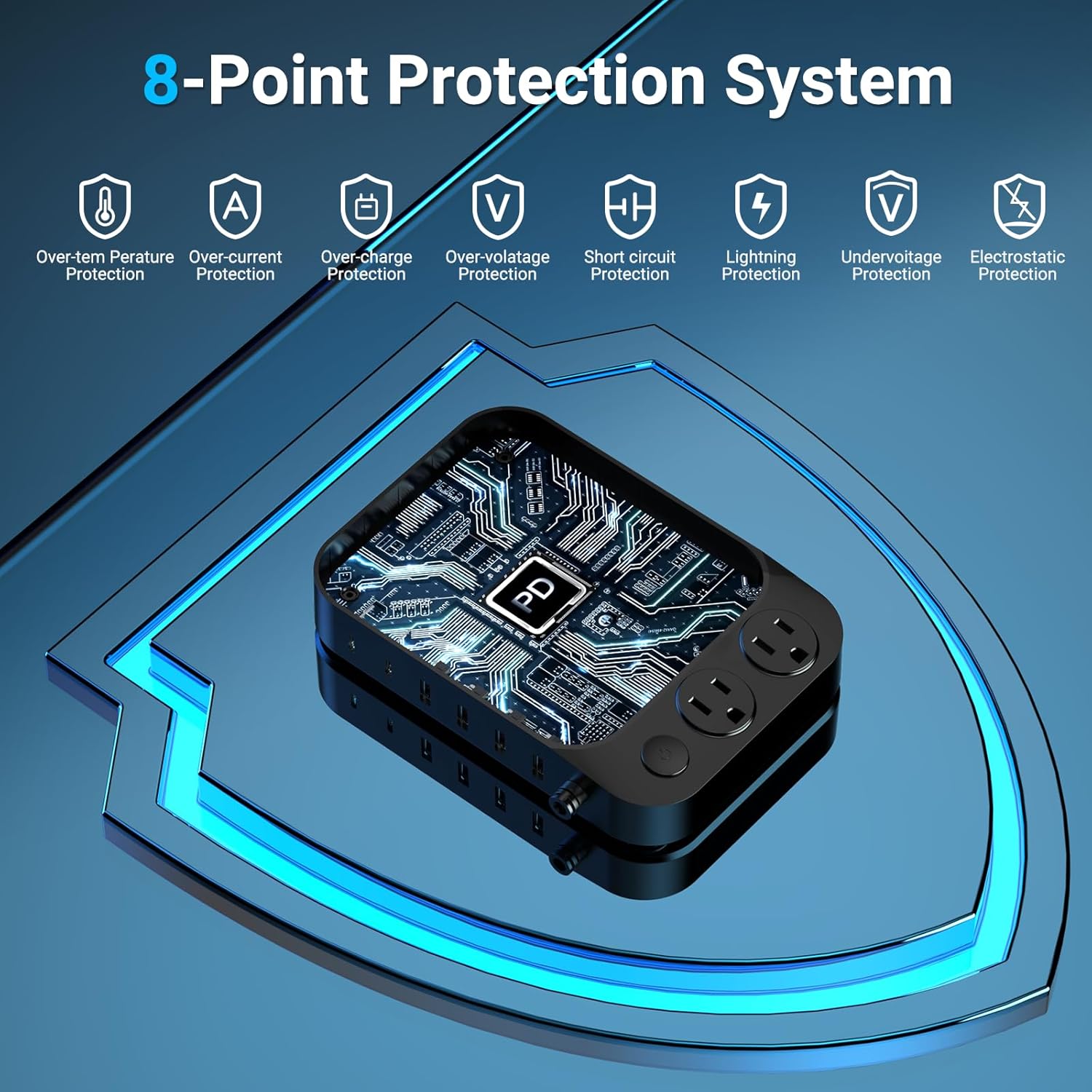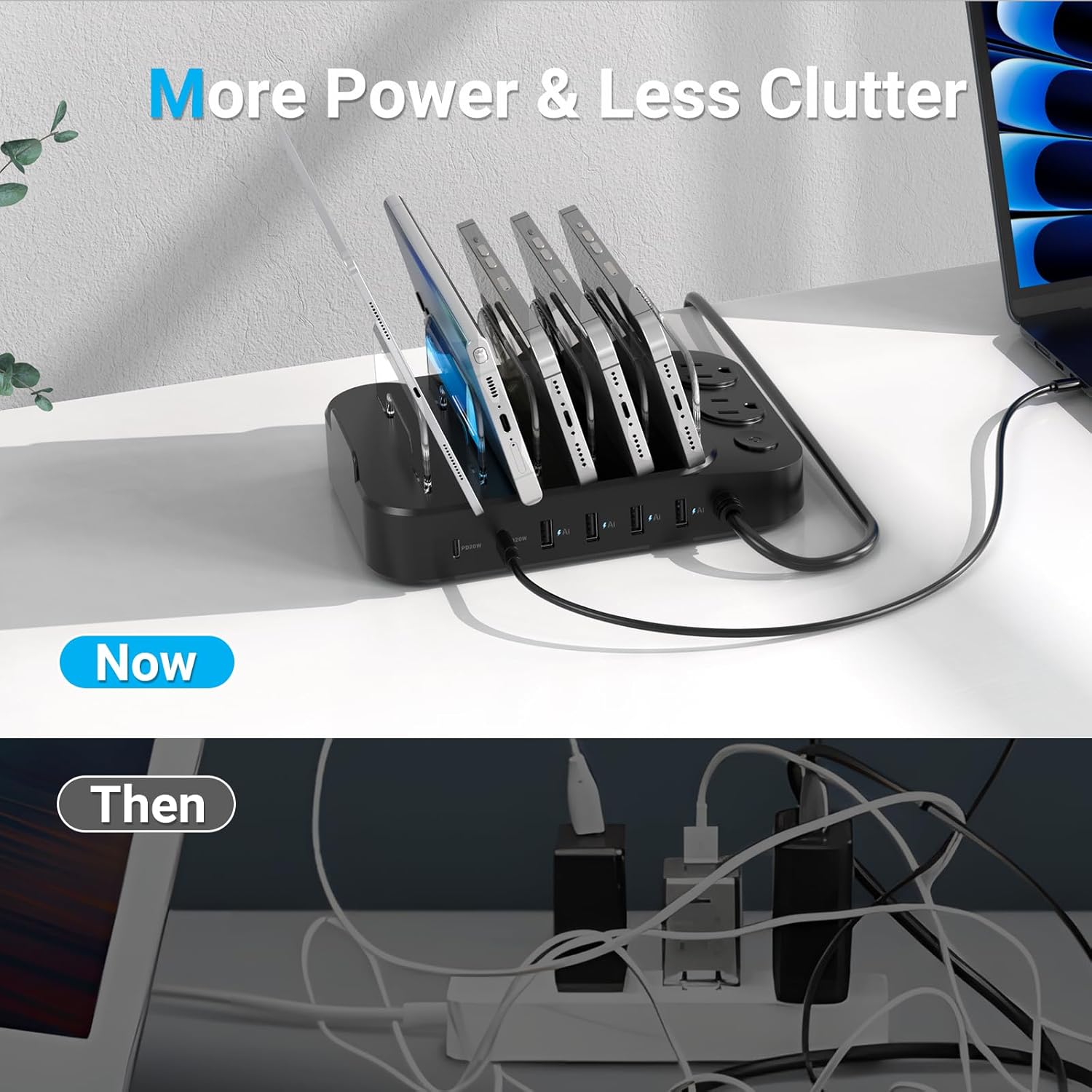 - 【8 in 1 Charging Stations】Two AC ports can meet high-power charging needs, two PD 20W ports can meet the rapid charging of electronic devices, and four USB ports can meet the simultaneous charging of multiple devices.By one wireless USB charger station, No more cluttered cables & do not need to plug a bunch of wall chargers on your power outlet,keeps your table nice and clean.and freed up outlets in your home and office.