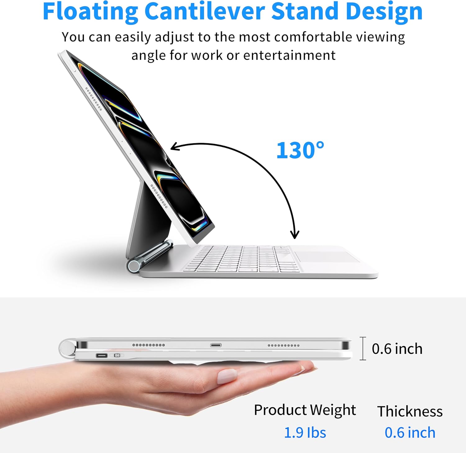 iPad Pro 13 inch case 2024 with Keyboard, Keyboard Case for iPad Pro 13-inch (M4, 2024) with 7 Colors Backlight, Multi-Touch Trackpad, Easy-Set Magnetic Stand, Auto Sleep/Wake (White)