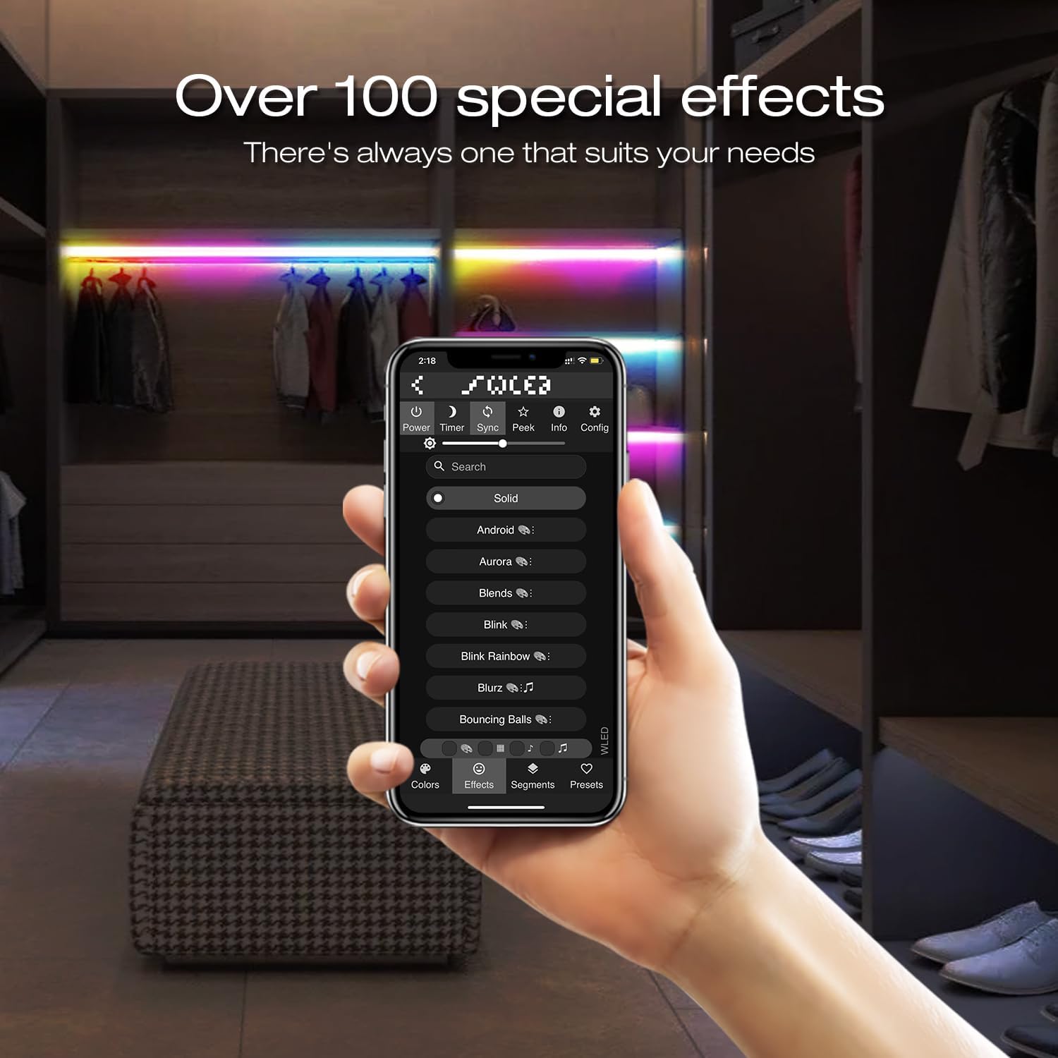 - Wireless control via wled app: Users can control the LED strip through the free wled app. This app provides an intuitive user interface, allowing users to adjust color, brightness, dynamic effects, and create custom scenes and scheduled tasks