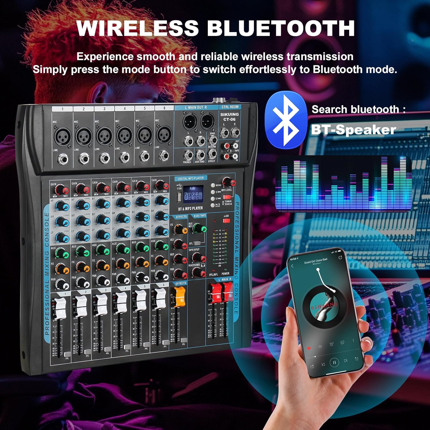 - 【Widely Uses】Our Pro Sound Mixer are fully featured to connect with a wide range of electronic devices and deliver accurate, clear sound quality. Whether you're performing on stage, interviewing, recording in a studio, conference, wedding or hosting karaoke at home, this mixing Console will meet your needs.