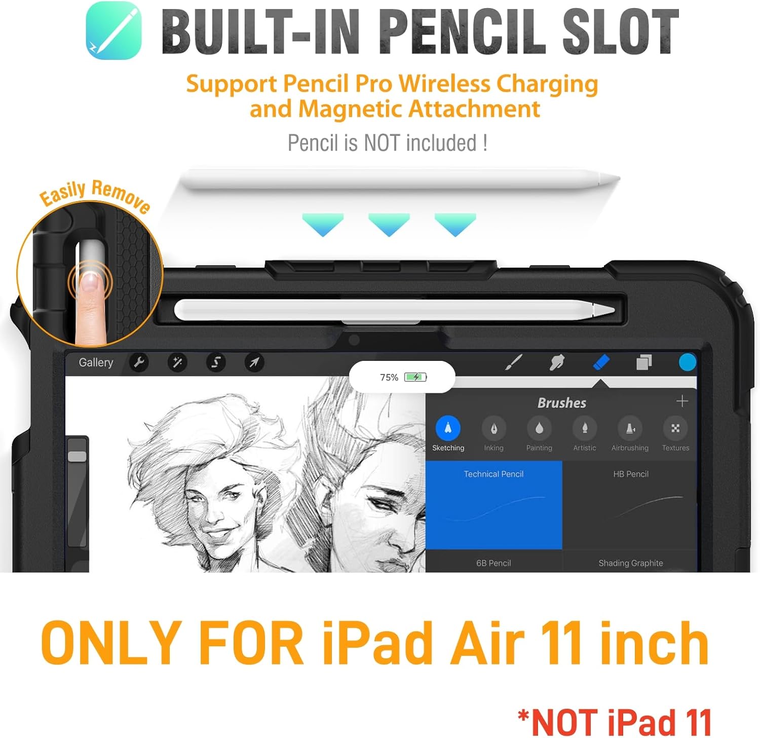 - Pencil Holder & Precise Cut-outs -- Allow easy access to all ports and buttons, the Pencil Slot Holder supports pencil 2nd wireless charge and magnetic attachment, always keep your pencil secure in place, free take the Air 11 / Air 7&6th Gen case around or put it in to a bag.