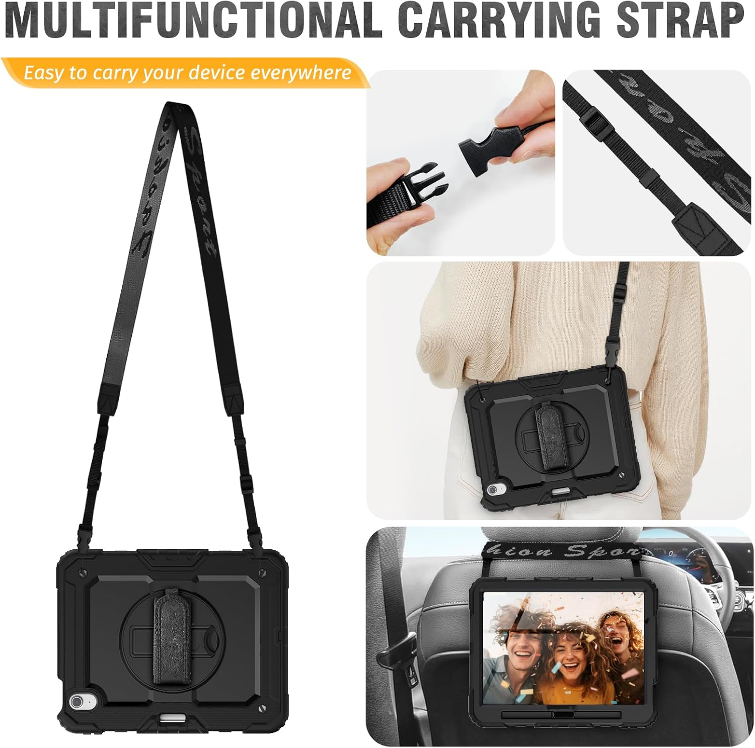 - Multifunctional Carrying Strap -- Detachable and adjustable shoulder, both kids and adults can carry the Air 7/6 i Pad case during hiking, traveling or other activities outside, or hang it on the back of seat for fun when traveling in cars.