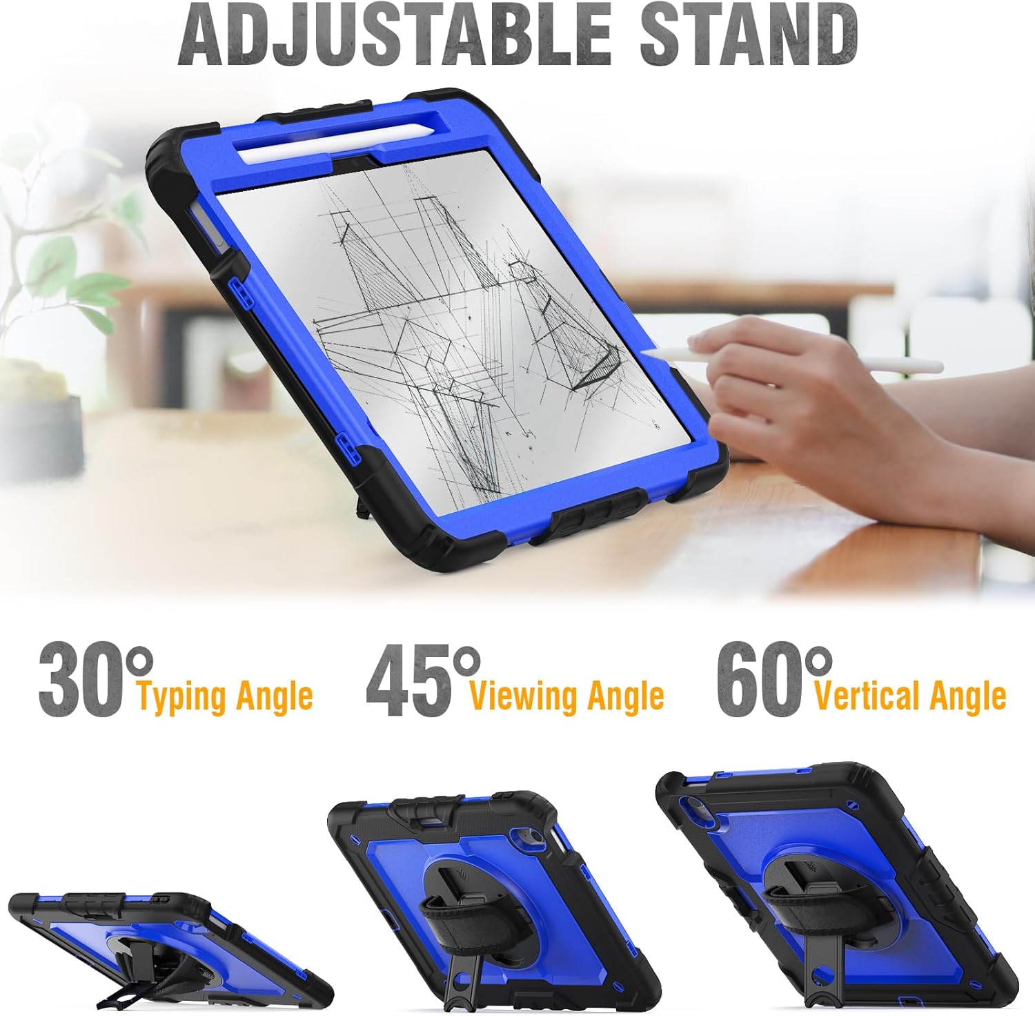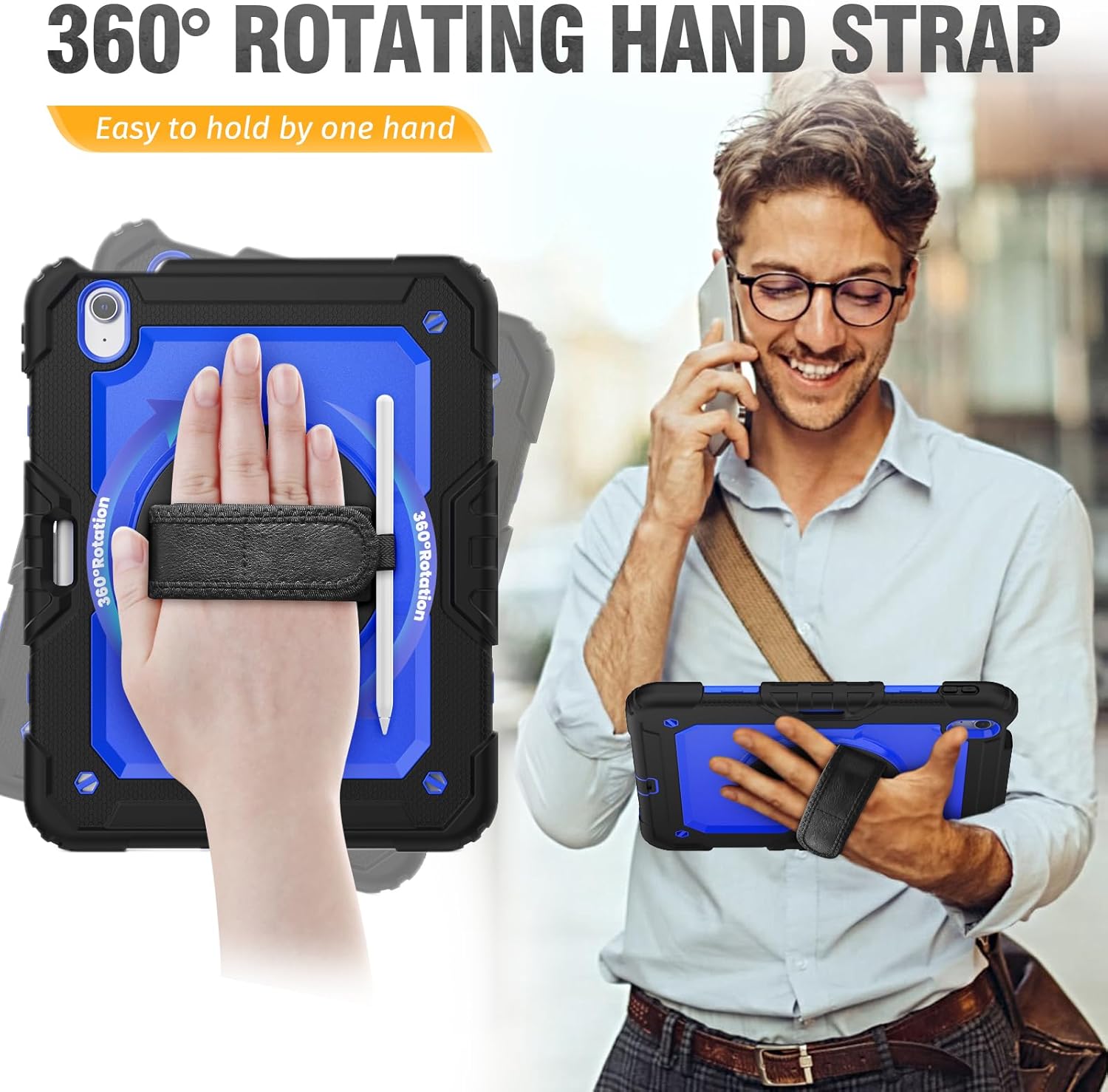 HXCASEAC Case for iPad Air 11 inch (2025 M3 / 2024 M2), Shockproof Design with Pencil Holder/Screen Protector/Rotating Hand Strap, Protective Cover for iPad Air 7th/6th Generation - Blue