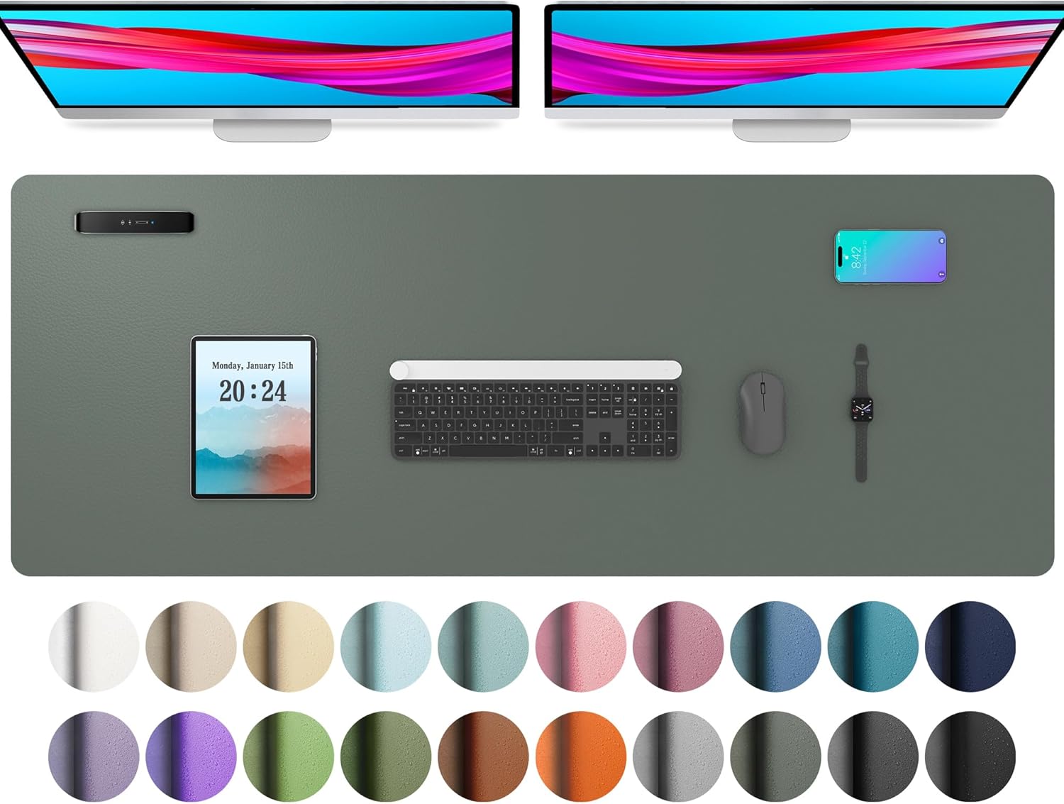 Aothia Leather Desk Pad Protector, Office Desk Mat, Large Mouse Pad, Non-Slip PU Leather Desk Blotter, Laptop Desk Pad, Waterproof Desk Writing Pad for Office and Home (48"x17", Jungle Green)