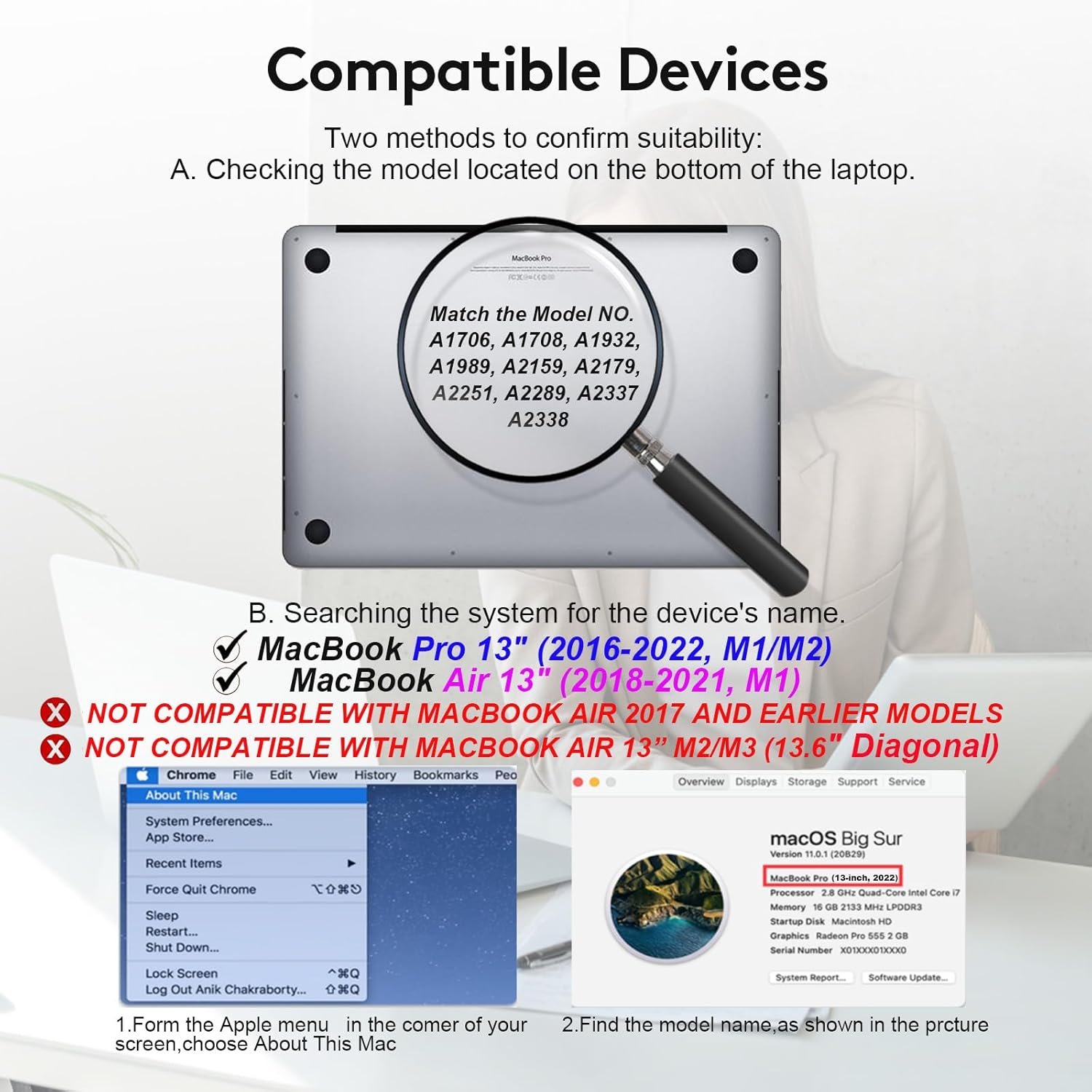 - Compatible Devices : 13" MacBook Air (2018-2020, M1), 13" MacBook Pro (2016-2022, M1/M2)