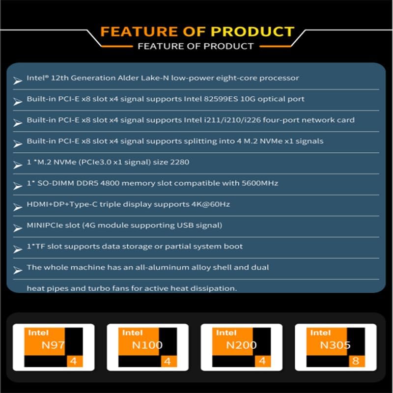 CWWK Intel Alder Lake N100(4C/4T Up to 3.4GHz)/N305(8C/8T Up to 3.8GHz) Dual SFP+10GbE Mini PC|4xIntel I226-V 2.5GbE |DDR5 Memory|PCI-E x4|HDMI+DP+Type-C (10 Gigabit N100, 32G RAM 1TB SSD)