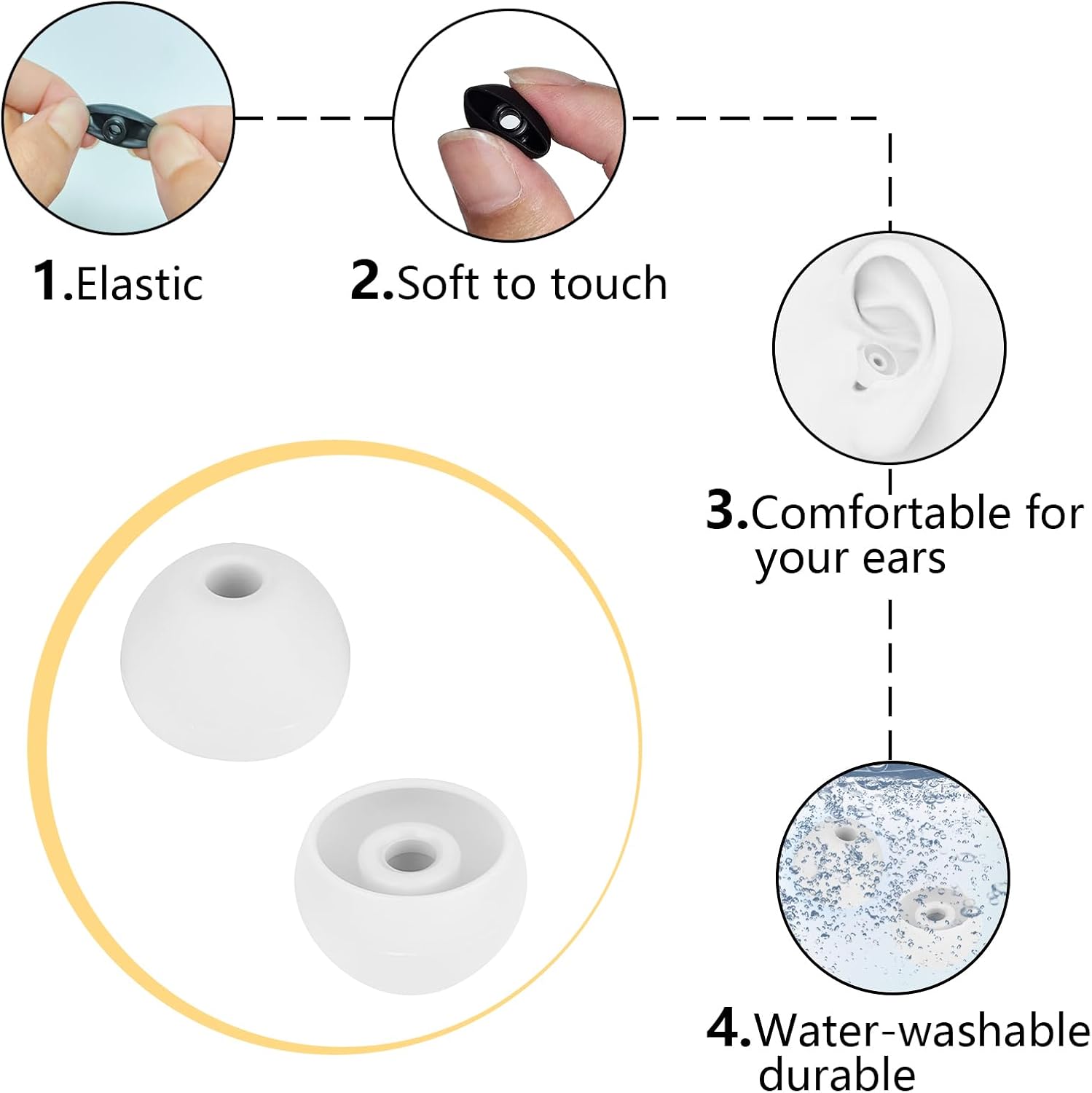 - 2.Earbud covers material:Soft silicone material, reusable and durable, elastic, soft to touch and comfortable for your ears.