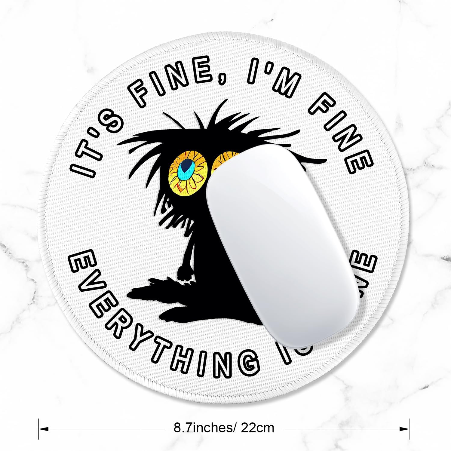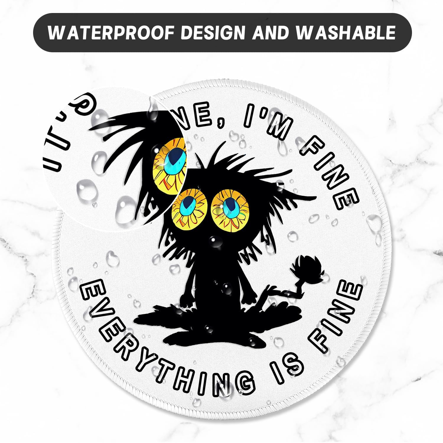 ITNRSIIET Round Mouse Pad with Stitched Edge Premium-Textured Waterproof Non-Slip Rubber Base Desktop Protection Mat Diameter 8.7 inches, Funny Black Cat