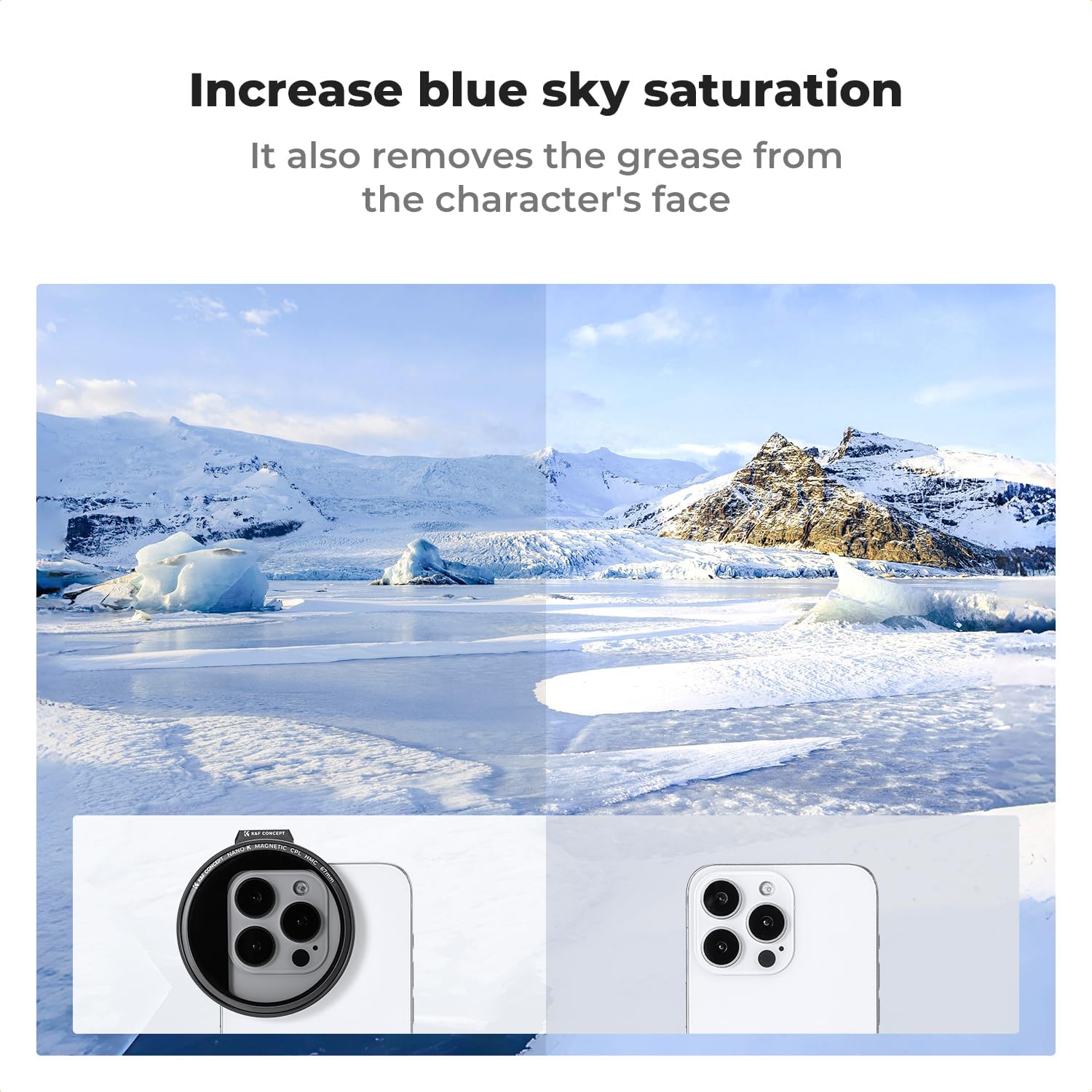 - 【Quality Material & Multi-Coated】The K&F Concept 67mm Magnetic CPL filter is made of top AGC optical glass, no effect on the image color, and restores the natural color, 18 multi-layer coating reduces reflection, and glare and improves color saturation and contrast.
