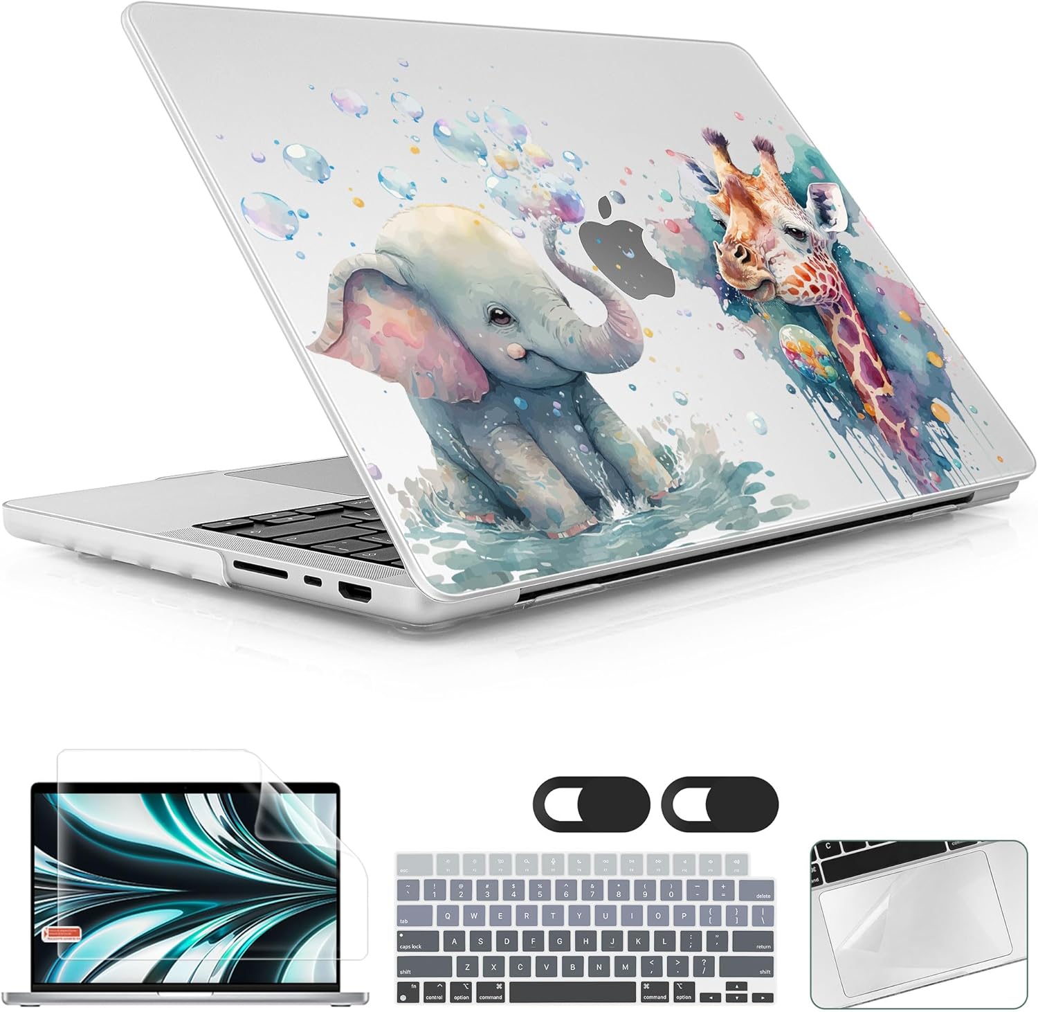 for MacBook Pro 16 inch Case 2021 2022 2023 2024 Release A3186 A3403 M4 A2991 M3 A2780 M2 A2485 M1 Pro/Max, Hard Shell Case with Screen Protector & Keyboard Cover, Elephant & Giraffe