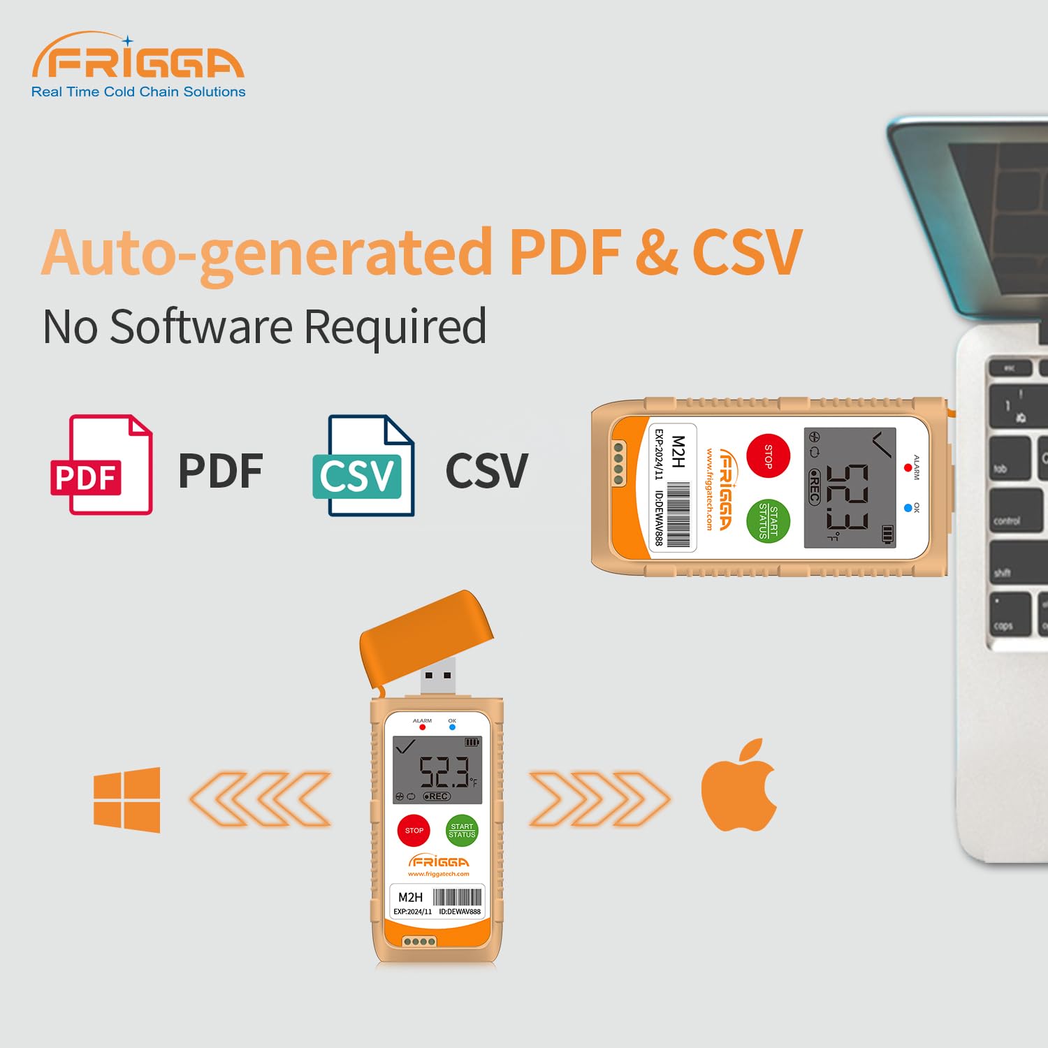 - Multiple Ways to Export Data Report: Easy to do the recording by pressing a button to start and stop. Plugging into a USB slot on any computer to get the PDF and CSV report directly without any software. Also. all current and historical reports can be exported via Frigga Data Center.