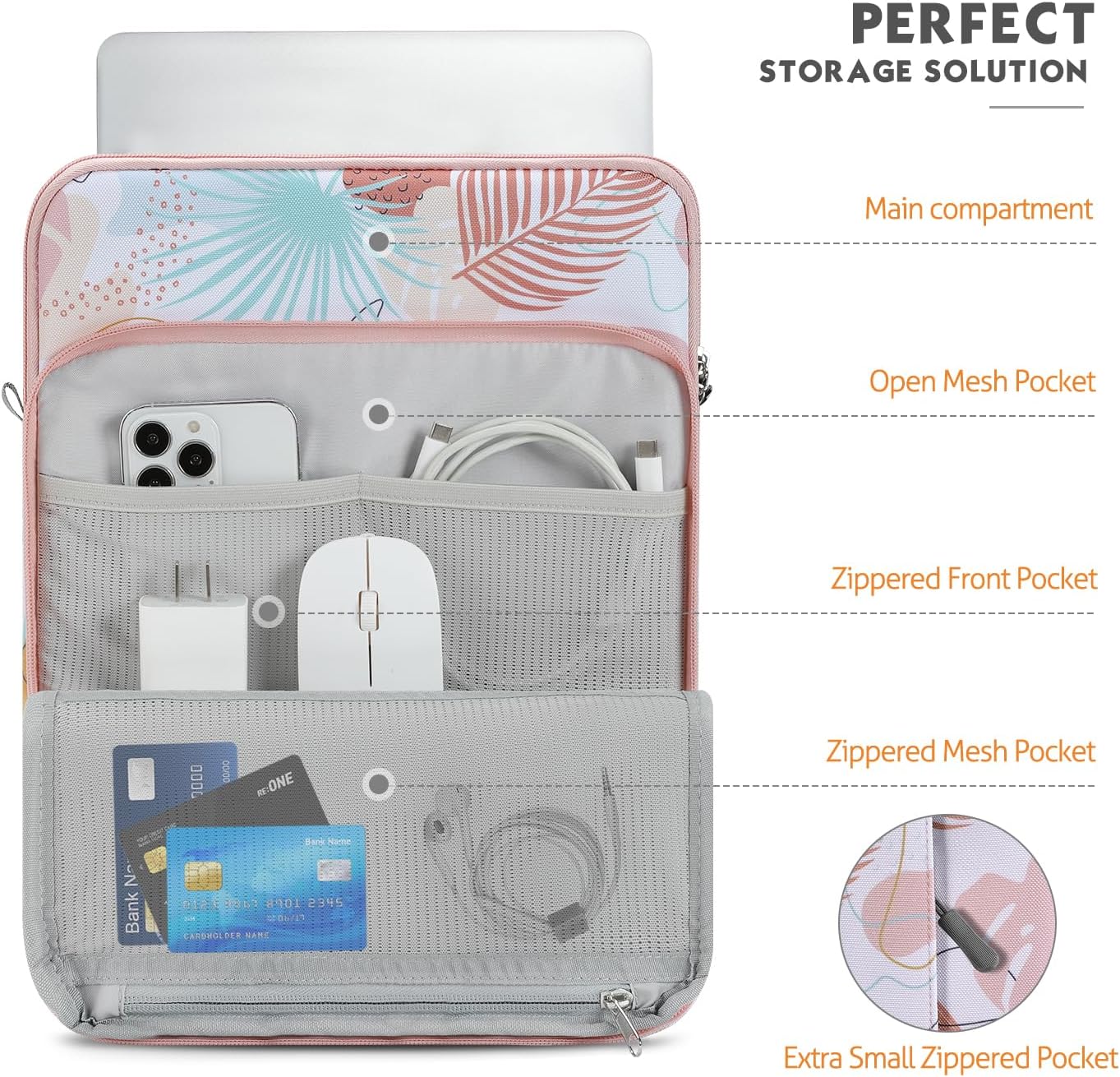 MoKo Laptop Sleeve Bag for 13.3-14 Inch, Notebook Carrying Case with Pocket Fits New MacBook Pro M3/M2 14" /13" M2/M1 Pro/M1 Max 14.2 2023-2021/Air 13.6" M2 2022, Surface Pro 9/8 13", Tropical Leaf