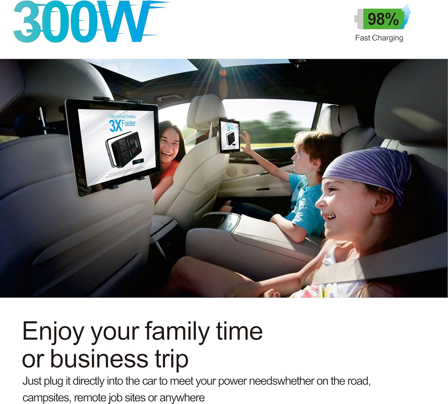 - ใ๐๐ถ๐ด๐ต ๐ฃ๐ผ๐๐ฒ๐ฟ ๐ฎ๐ป๐ฑ ๐ ๐๐น๐๐ถ-๐ฃ๐ผ๐ฟ๐ ๐๐ฒ๐๐ถ๐ด๐ปใ๏ผ This 300W Cigarette Lighter Adapter offers robust power output and multiple charging ports to cater to diverse needs on the road. Dual AC outlets handle high-power devices like laptops and small appliances, while two USB-C ports (24W and 65W) and two USB-A 24W ports provide fast charging for various electronics. The multi-port setup allows simultaneous charging of multiple devices, ensuring you donโt run out of power. Ideal for 12V vehicles, it delivers reliable support for family trips, camping, and emergency situations.