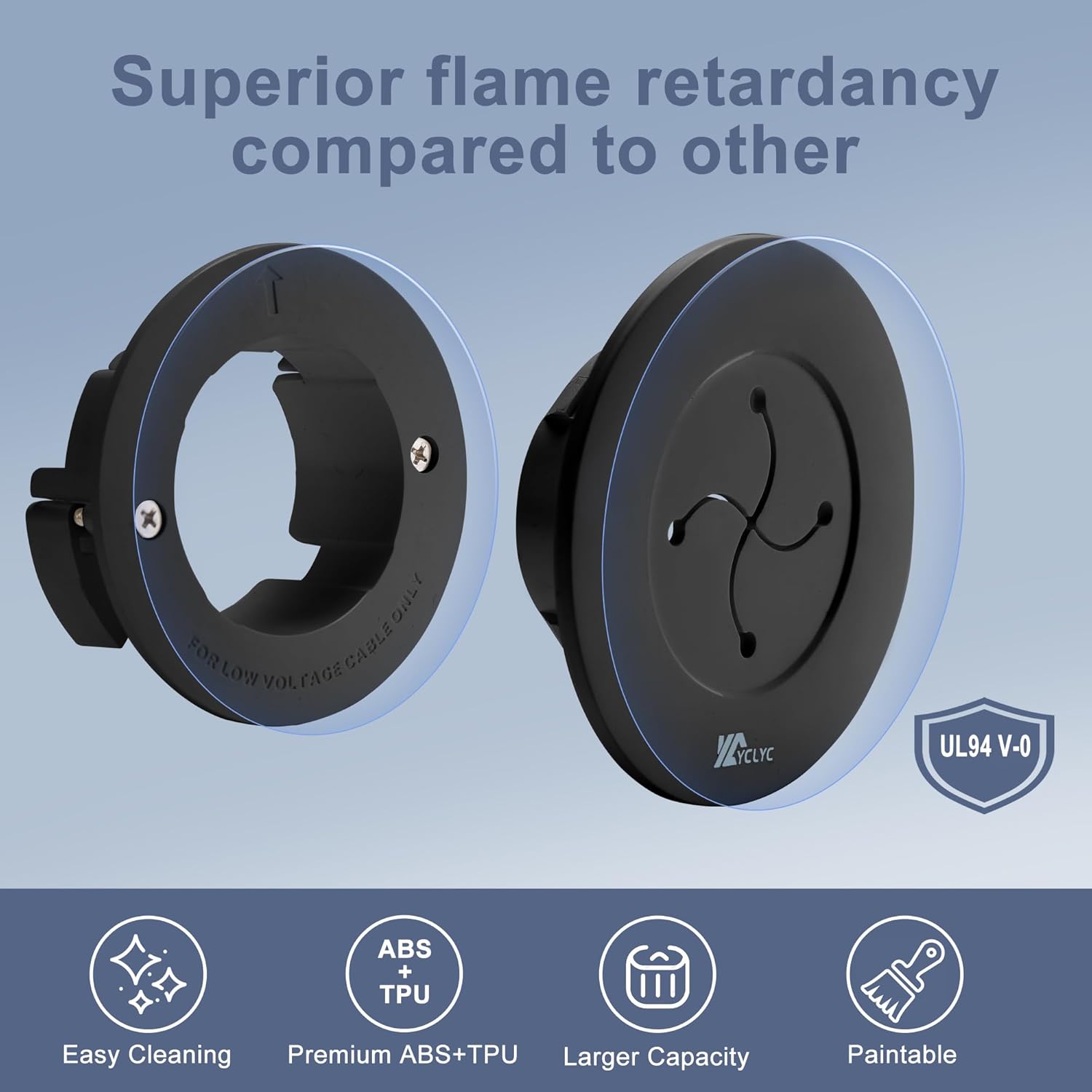 - Large-Capacity Wall Cord Hider: The internal diameter of 2.16 inch, the flexible wall cable pass through comfortably accommodate 4+ large cables, easily accommodating various thicknesses wires. Suitable for hide cables on wall HDMI, data, power, speaker, network cables, and other wire types.